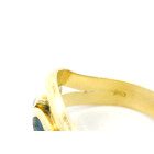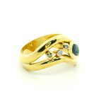 Anillo moderno de diseño realizado en oro 18k . Posee zafiro azul central y brillantes autenticos.
