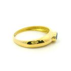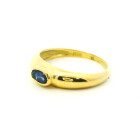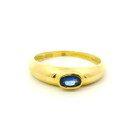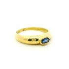 Anillo solitario moderno realizado en oro 18k con zafiro azul oval central.