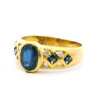 Anillo Moderno Oro 18k Zafiro Natural Brillantes