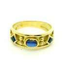 Anillo moderno realizado en oro 18k macizo con zafiros azules centrales.