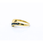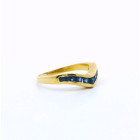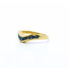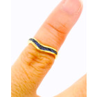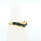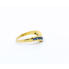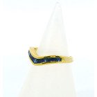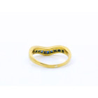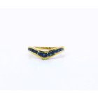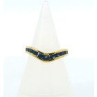 Anillo moderno realizado en oro 18k , modelo medio sinfin en v , con zafiros azules.