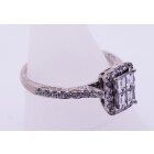 Anillo moderno realizado en oro blanco , 18k , con brillantes autenticos , talla carre y talla completa , peso en kilates totales: 1,02 ct