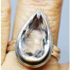 Hermoso anillo moderno realizado en plata 925 con enorme gota de cristal de roca.