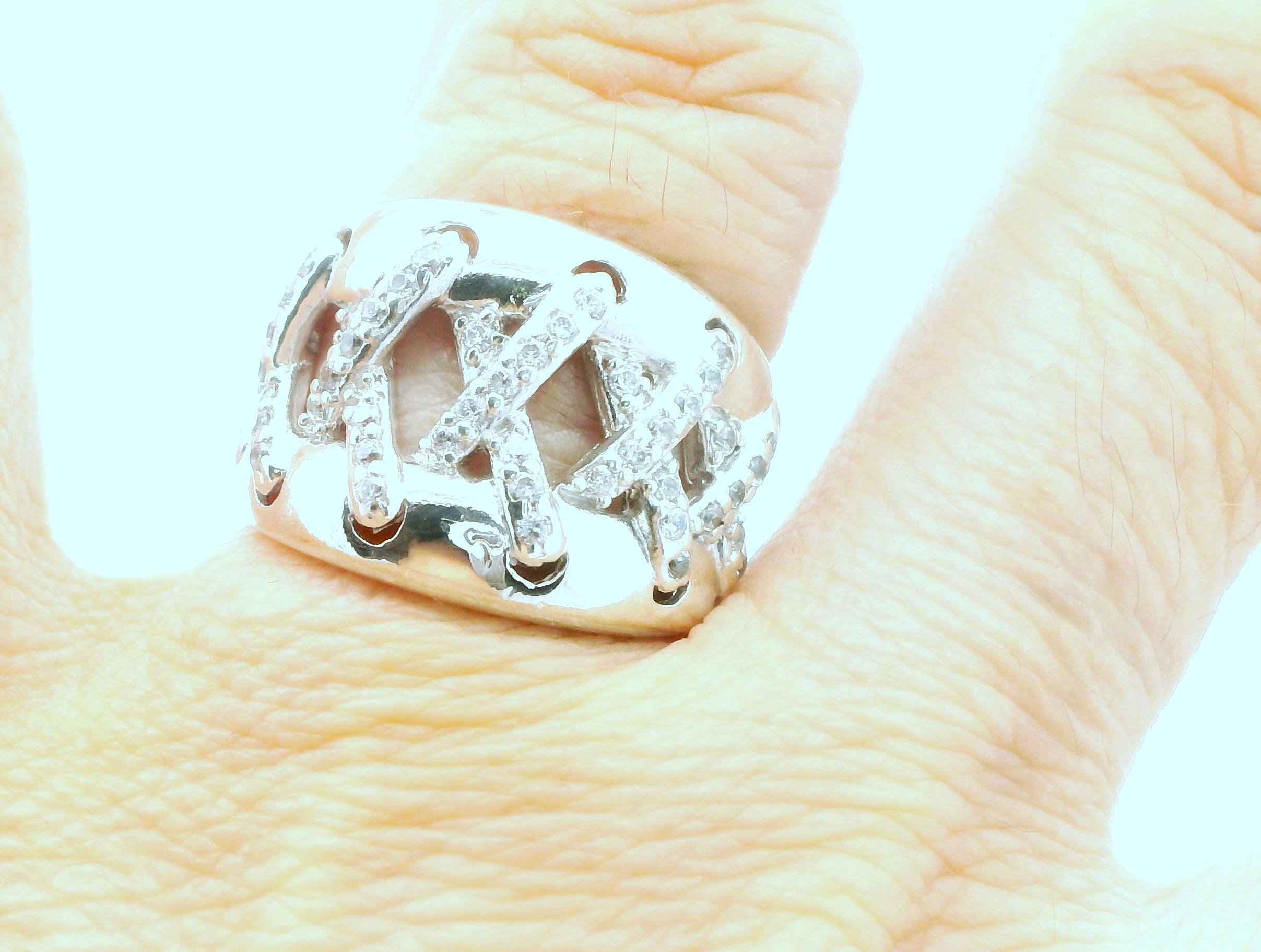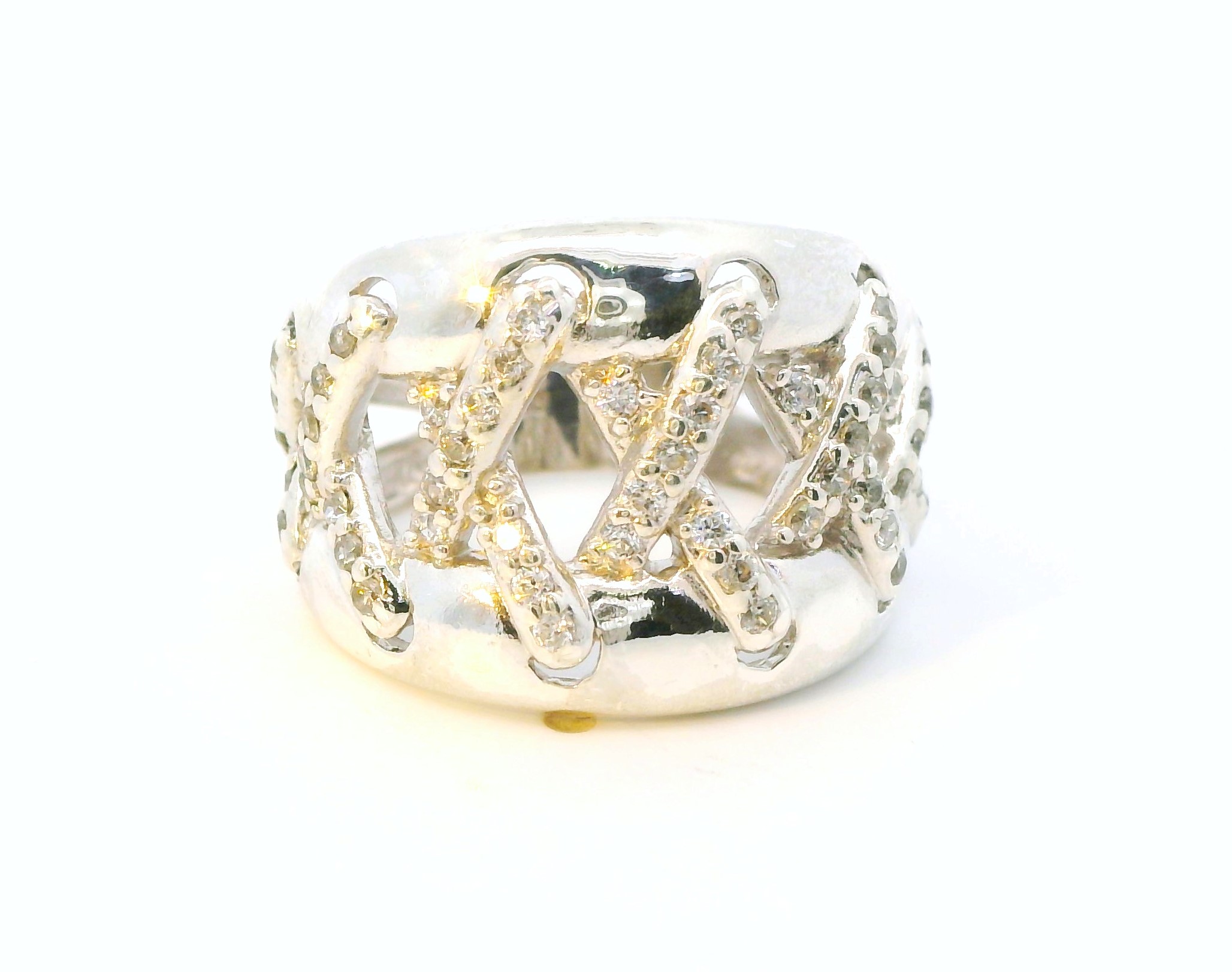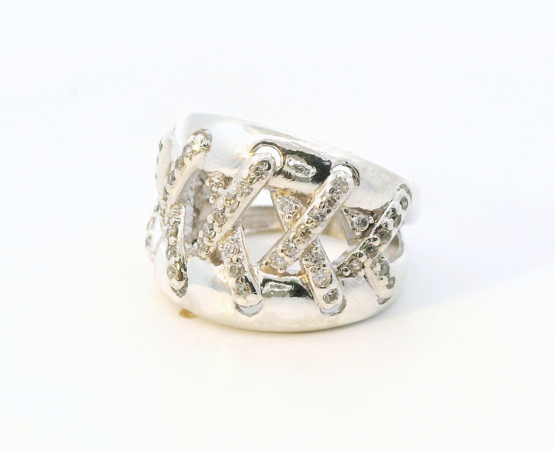 Anillo moderno de diseño realizado en plata 925, modelo: tejido con pave de cubics.
