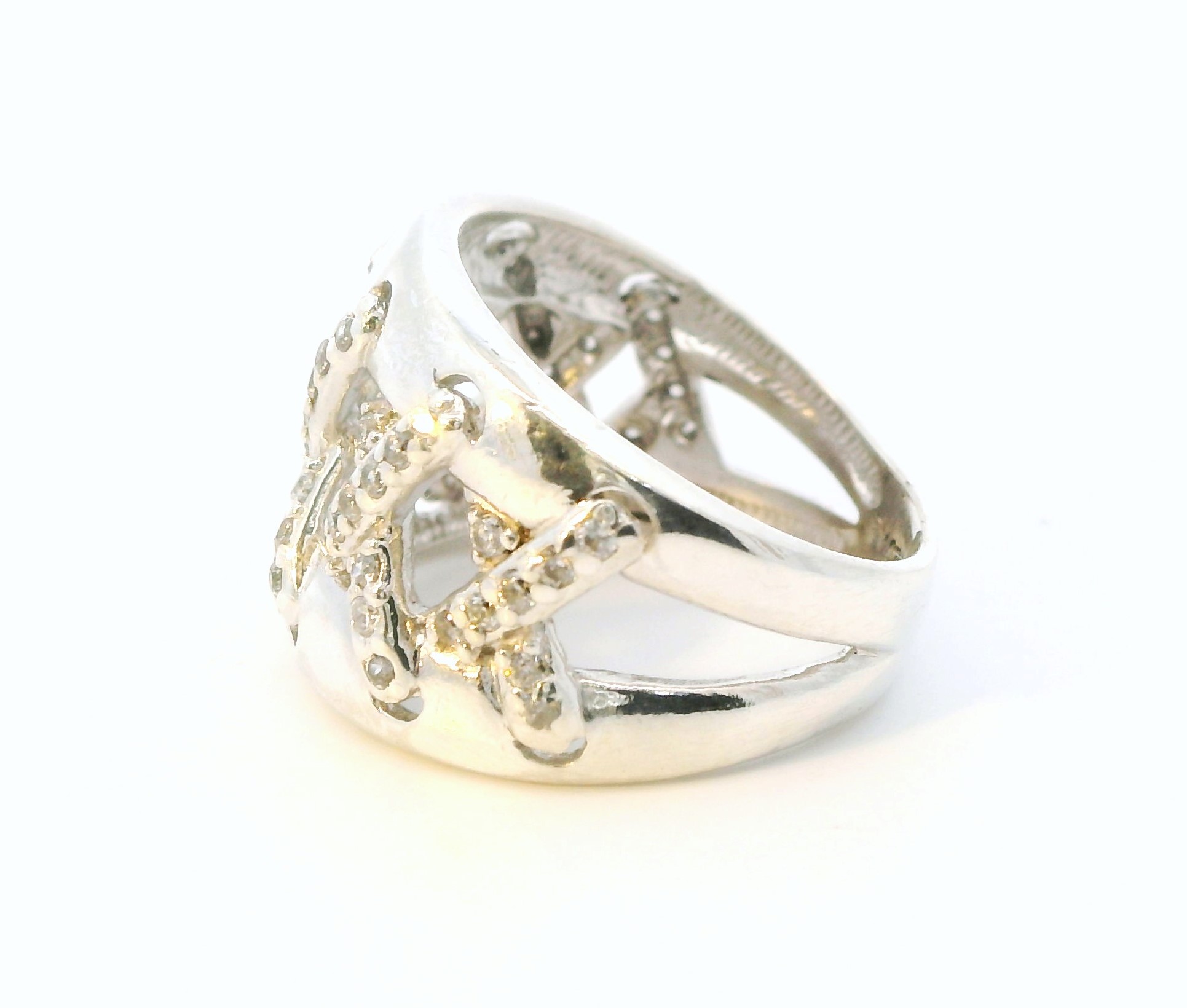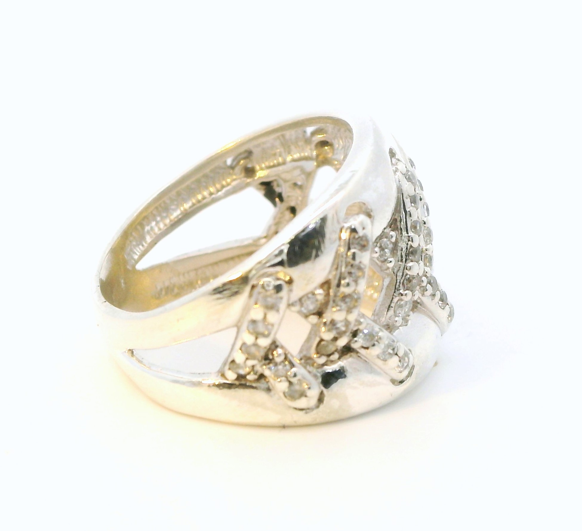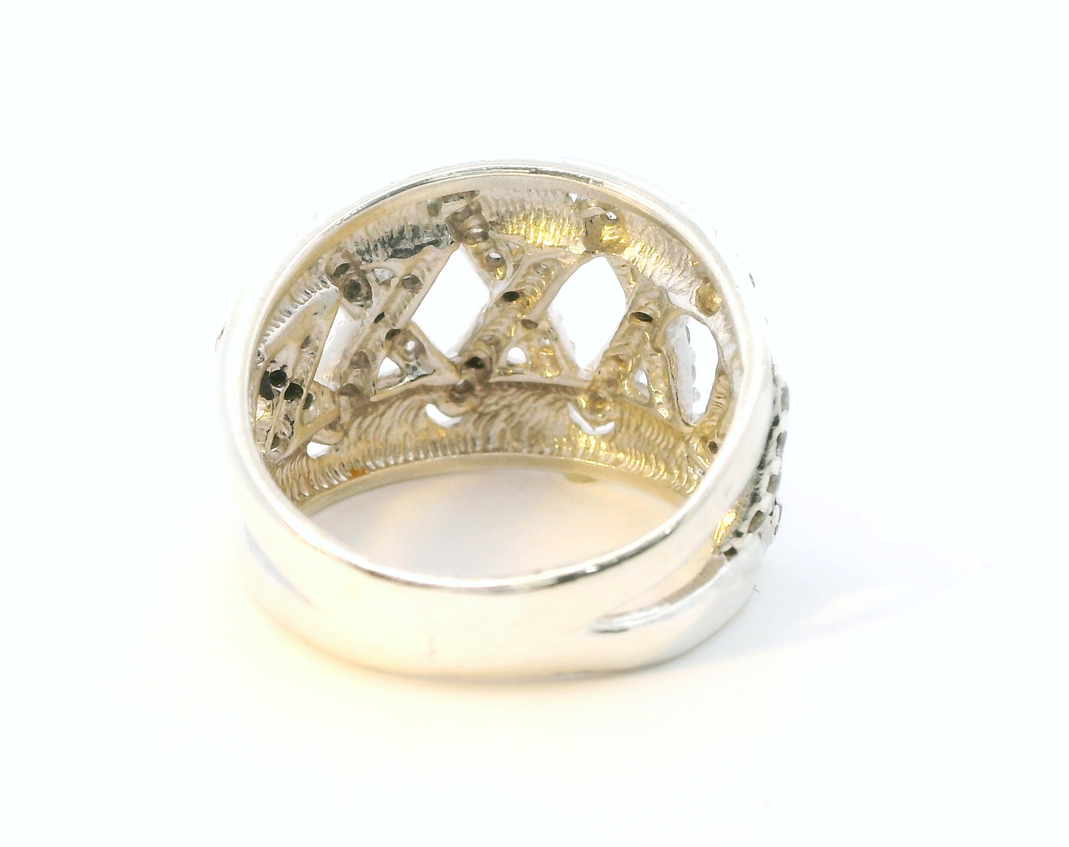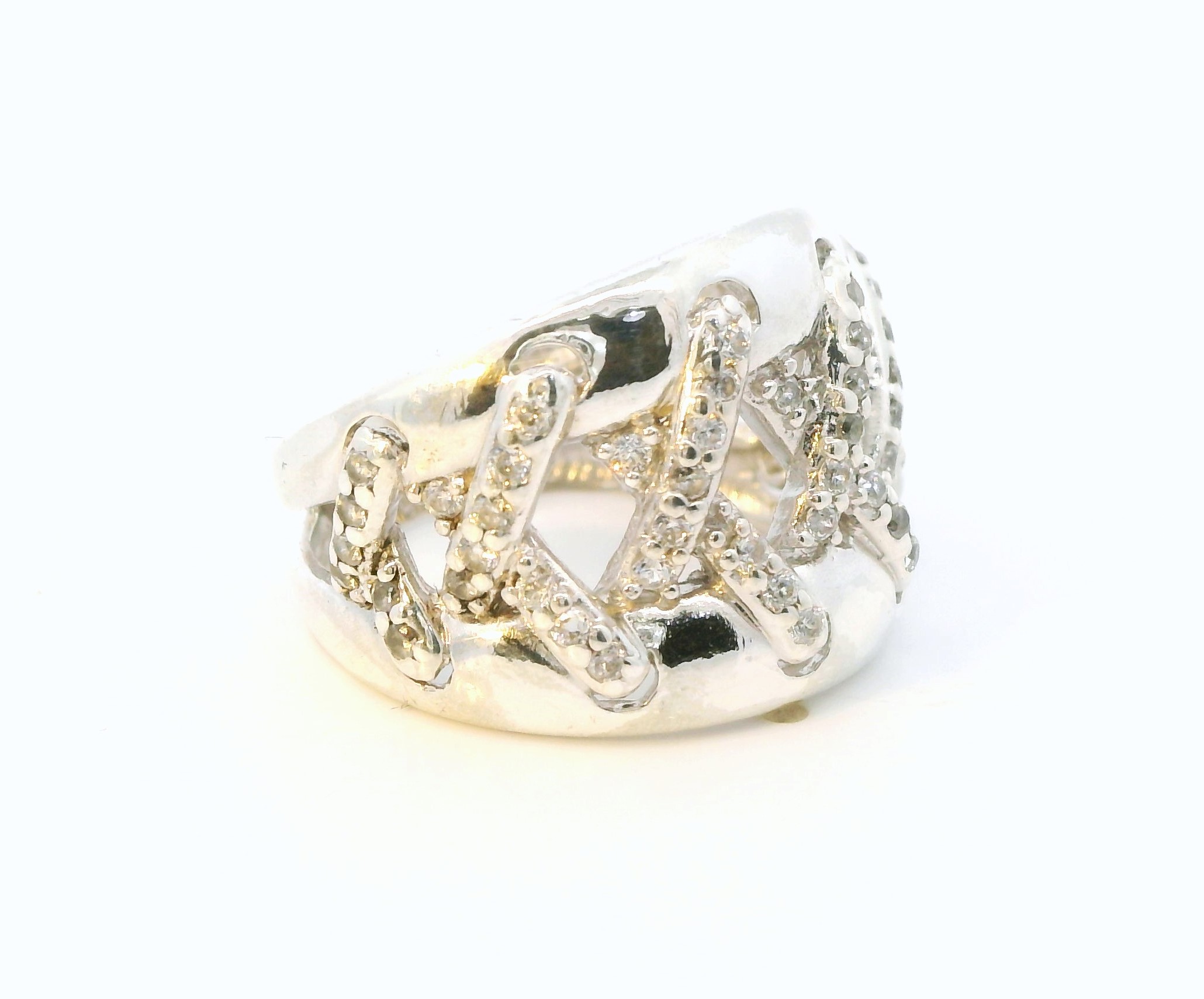 Anillo moderno de diseño realizado en plata 925, modelo: tejido con pave de cubics.