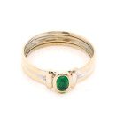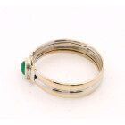 Anillo solitario moderno realizado en plata 925 con esmeralda cabullon central natural.