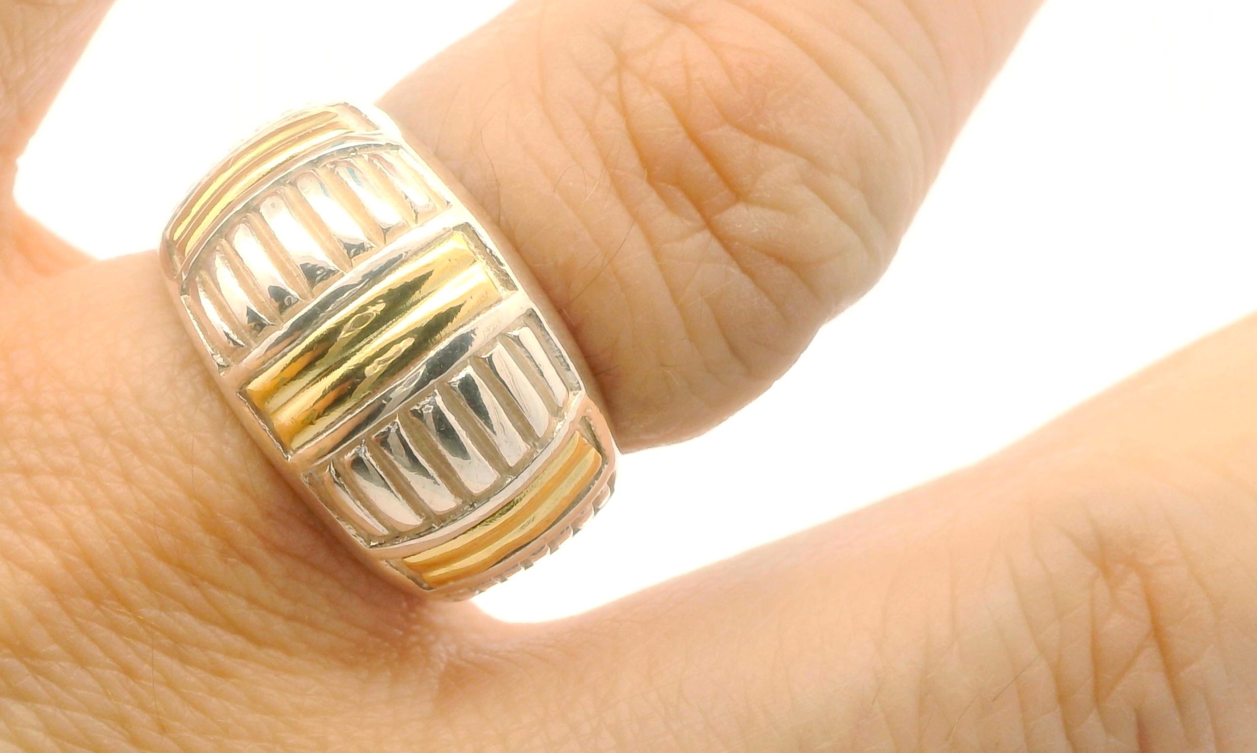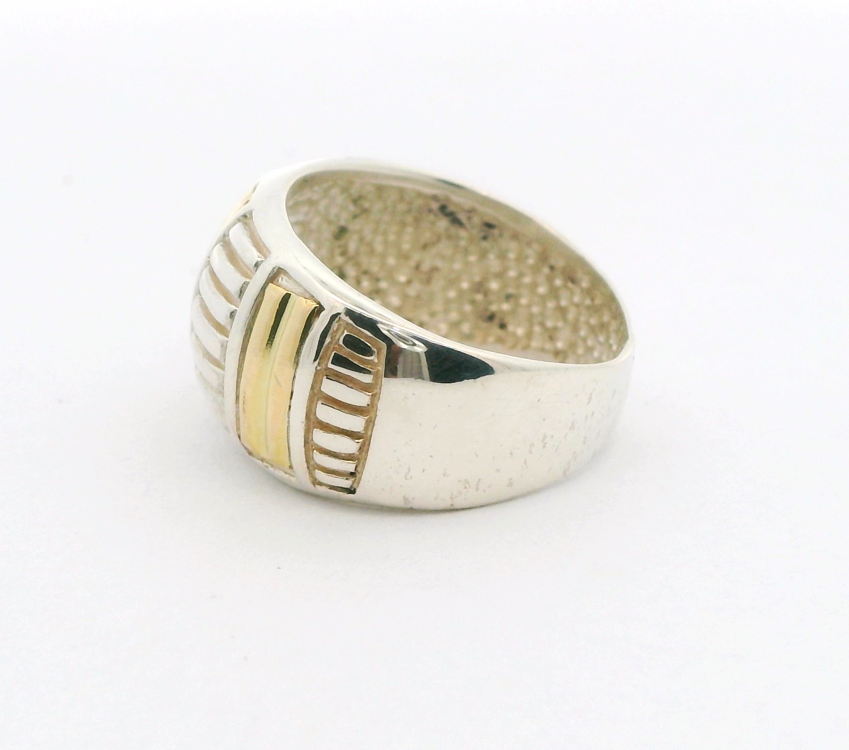Anillo Moderno Plata 925 Maciza Y Oro 18k Lineas