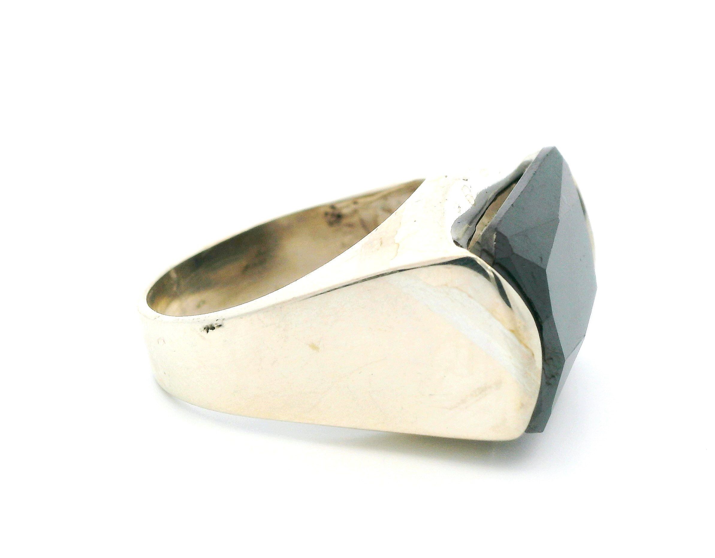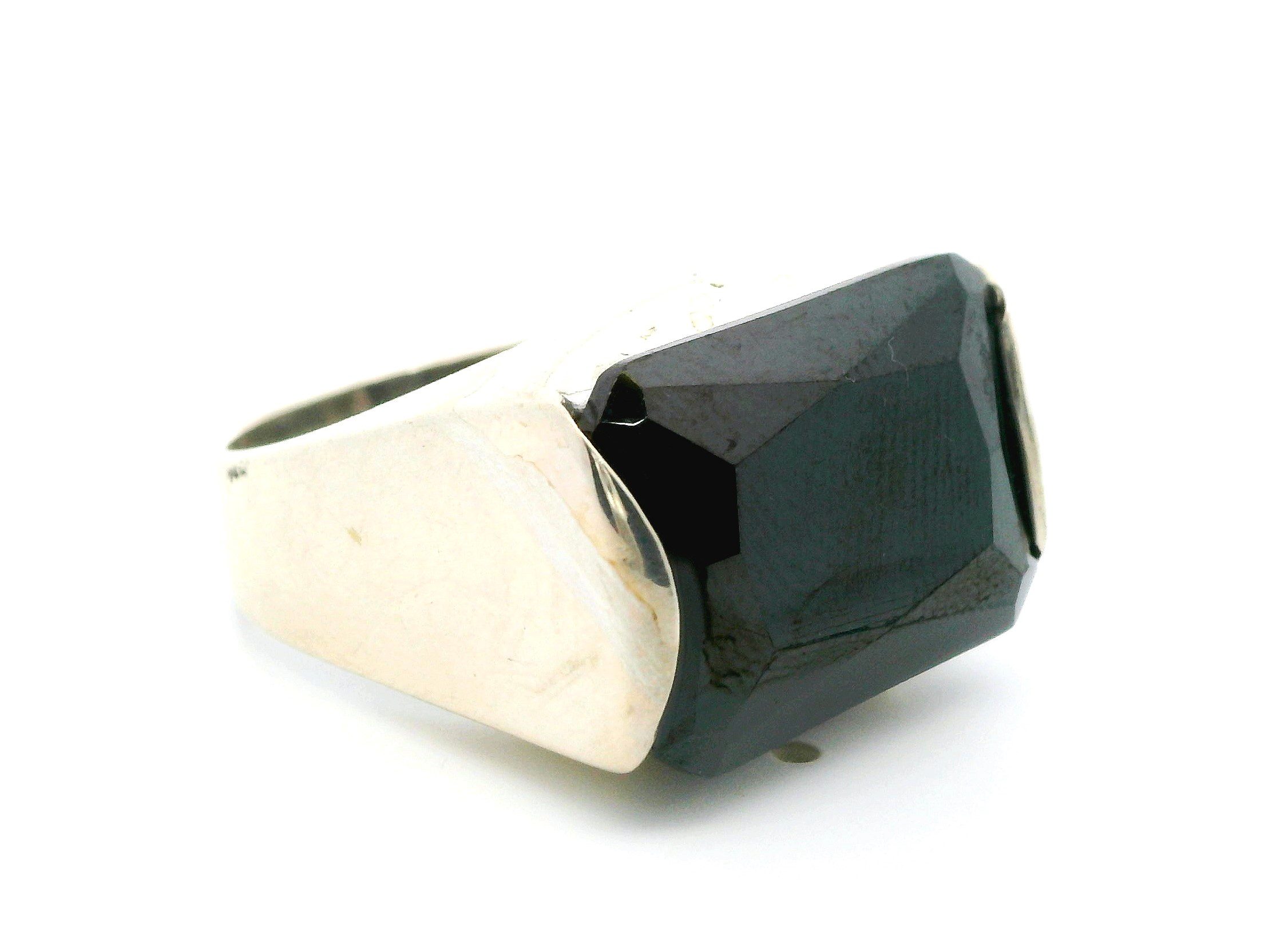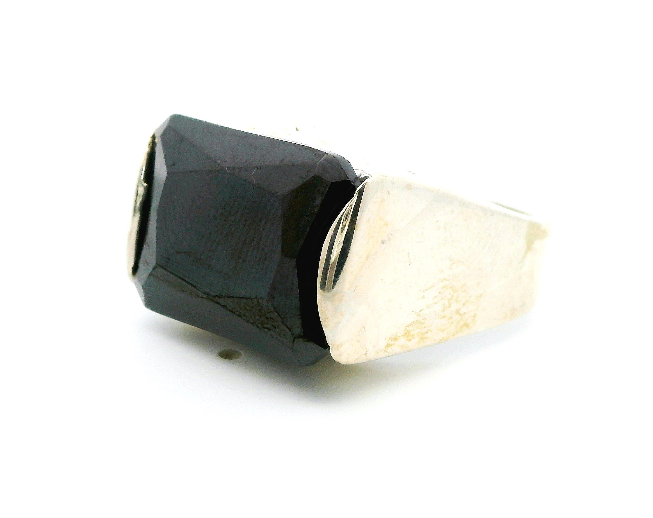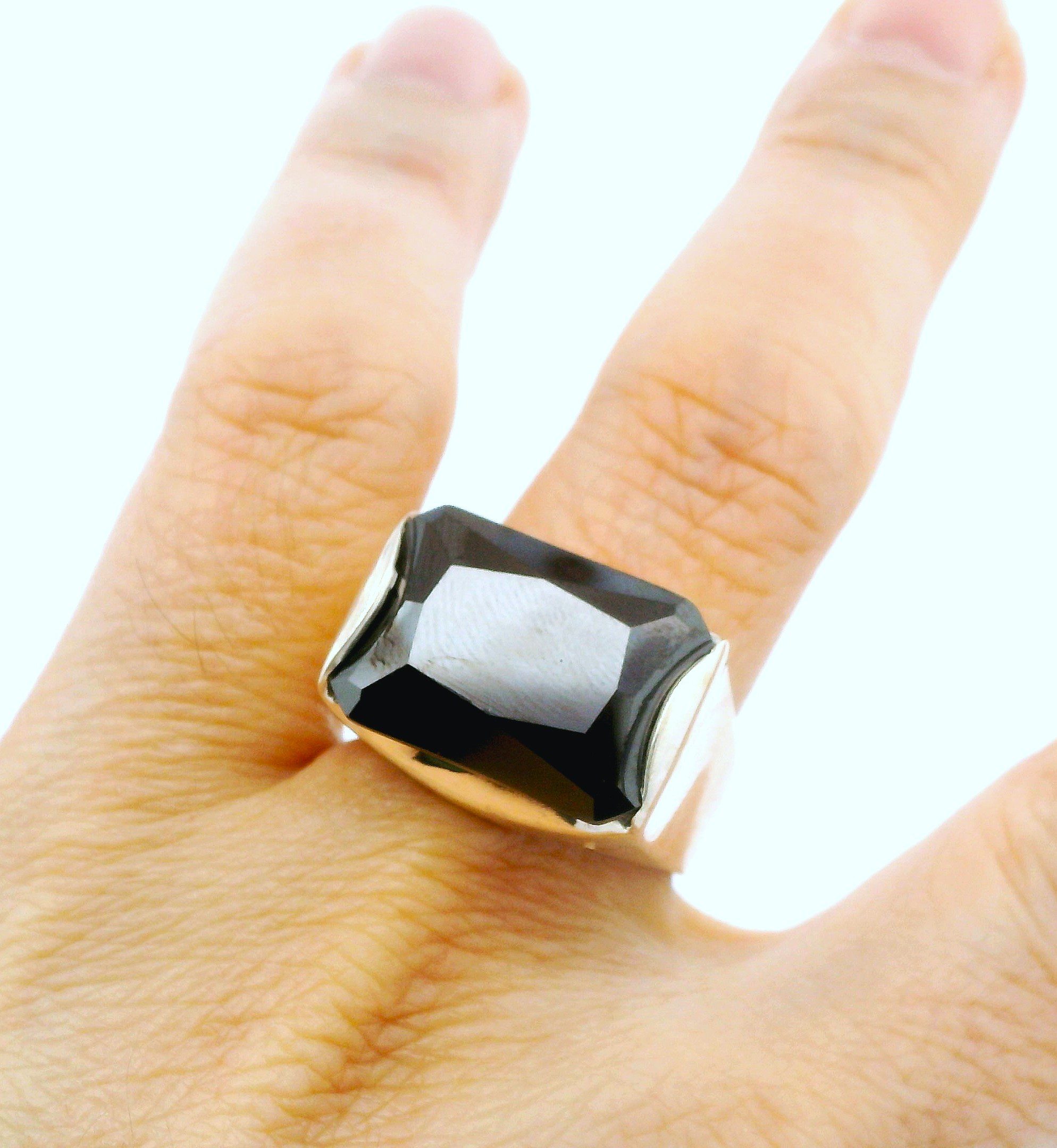 Anillo Moderno Plata 925 Onix Rectangular Facetado