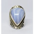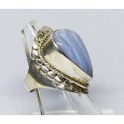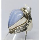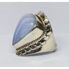 ANILLO DE GRAN DISEÑO Y TAMAÑO REALIZADO EN PLATA MACIZA CON AGATHA CELESTE GOTA ENGARZADA