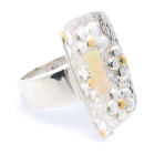 Anillo moderno realizado en plata 925 y detalles en oro 18k , modelo: flores.