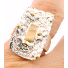 Anillo Moderno Plata 925 Y Oro 18k Diseño Flores