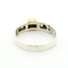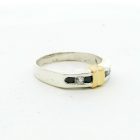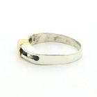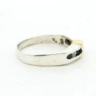 Anillo mdio sinfin de diseño moderno realizado en plata 925 con detalle en oro 18k. Posee zafiros blancos y azules engarzados.