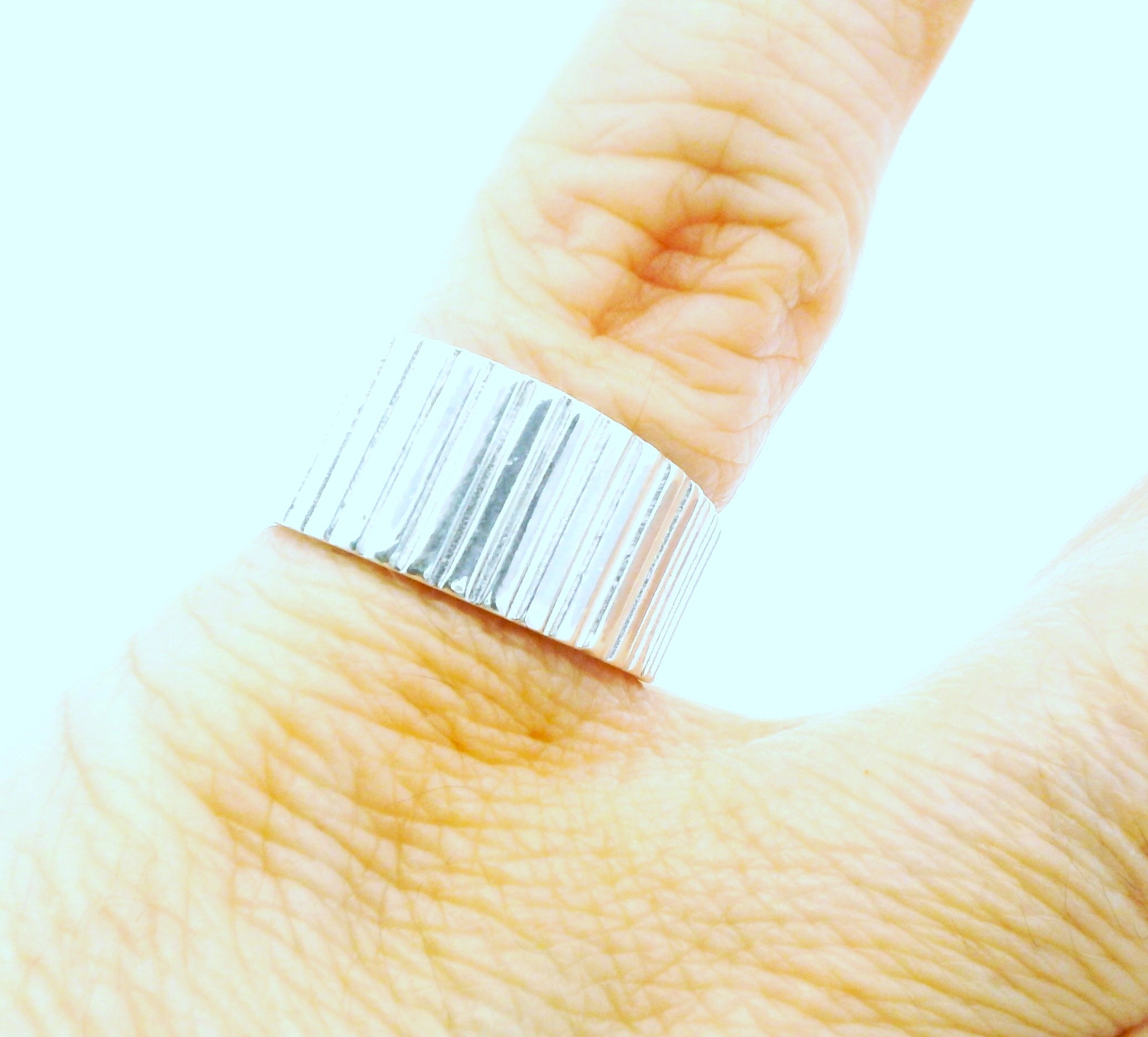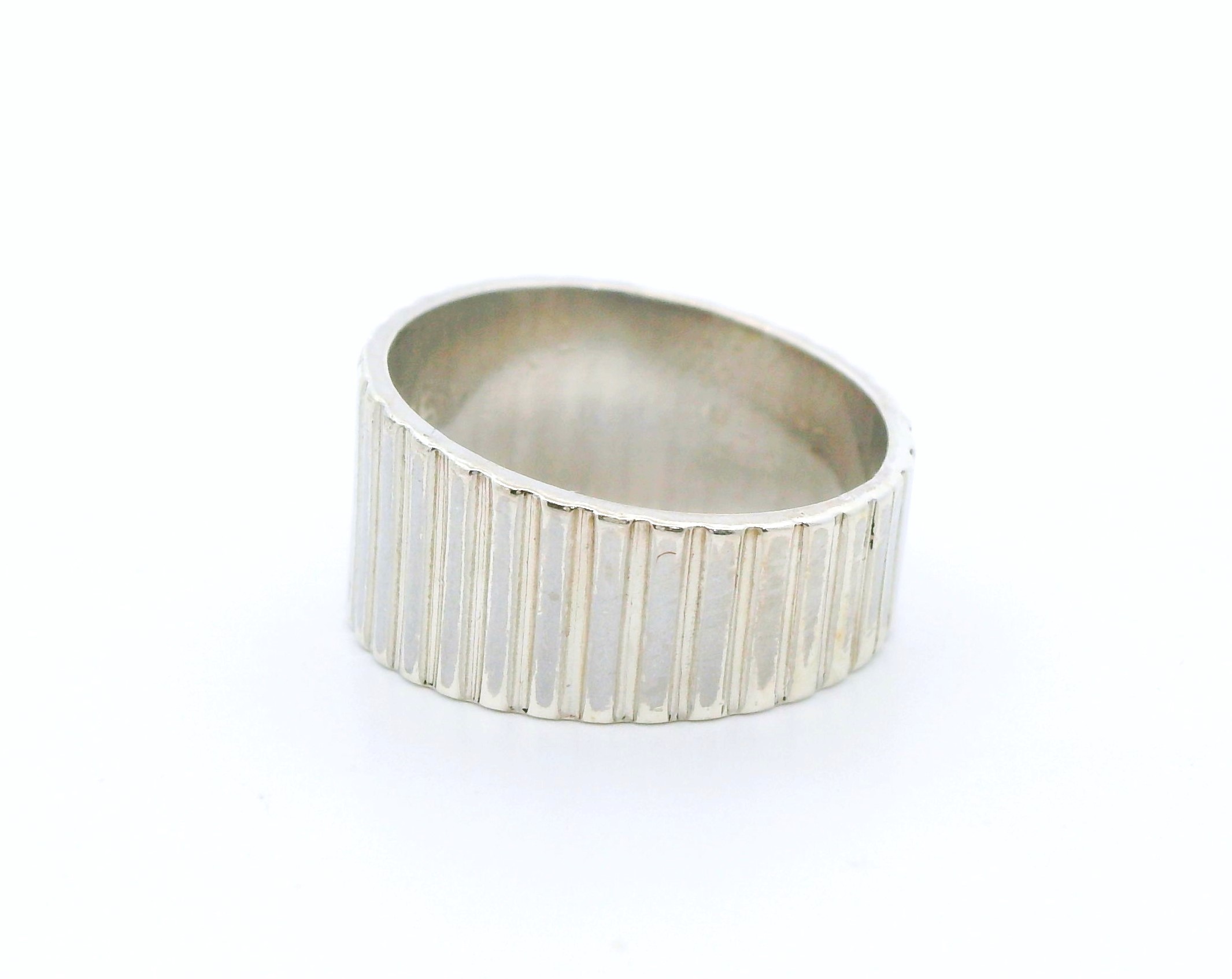 Anillo moderno realiazdo en plata 925 , sellado. Modelo: rayado