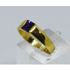 Anillo solitario moderno, realizado en oro 18 k , amatista central talla carre , maxima calidad y color; peso en kilates aprox: 0,50 ct , peso en gramos de la alhaja: 2,2 gr