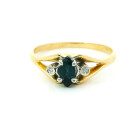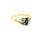 Anillo moderno realizado en oro 18k zon zafiro azul central talla navette natural y zafiros blancos.