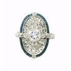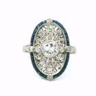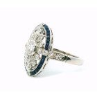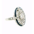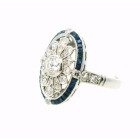 Anillo Oval Frances Art Deco Platino 950 Brillantes Zafiros