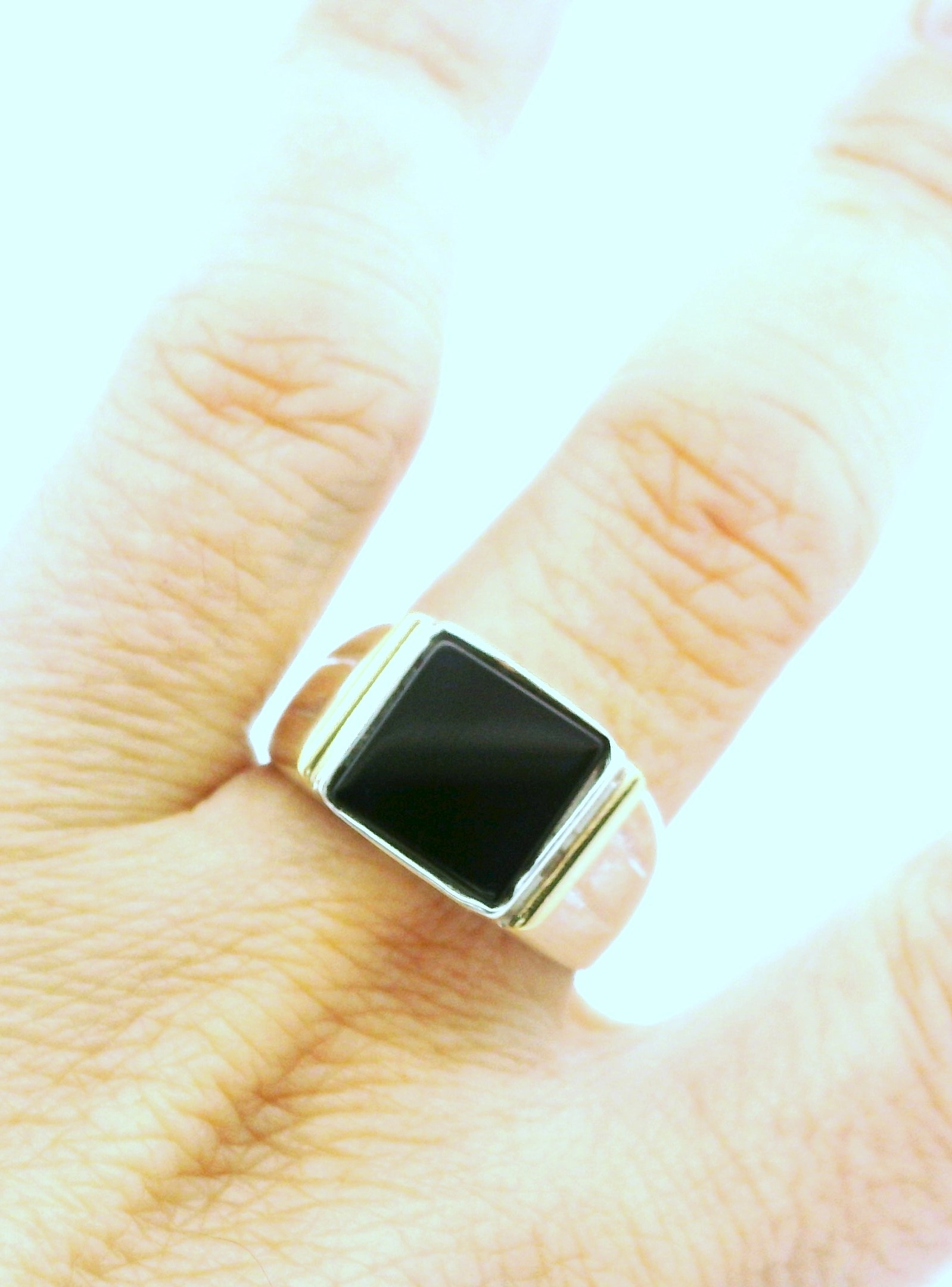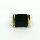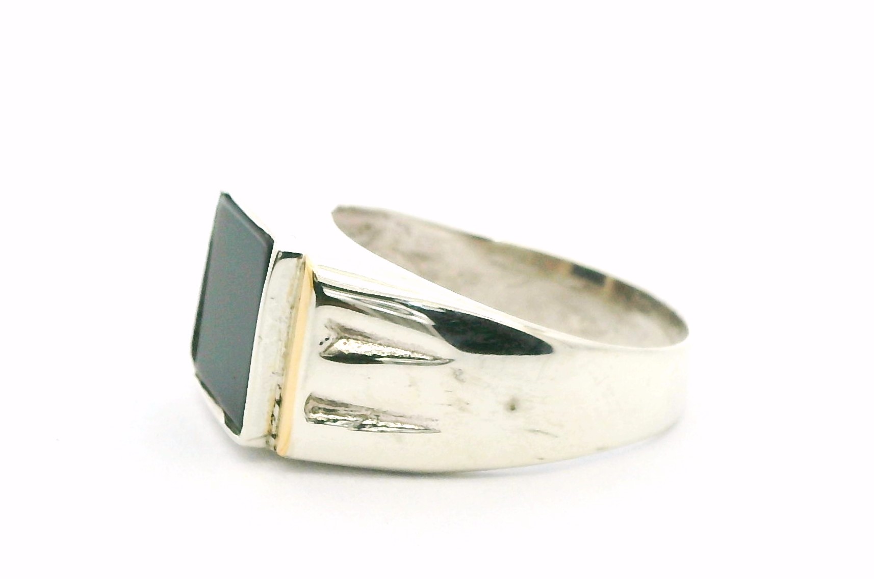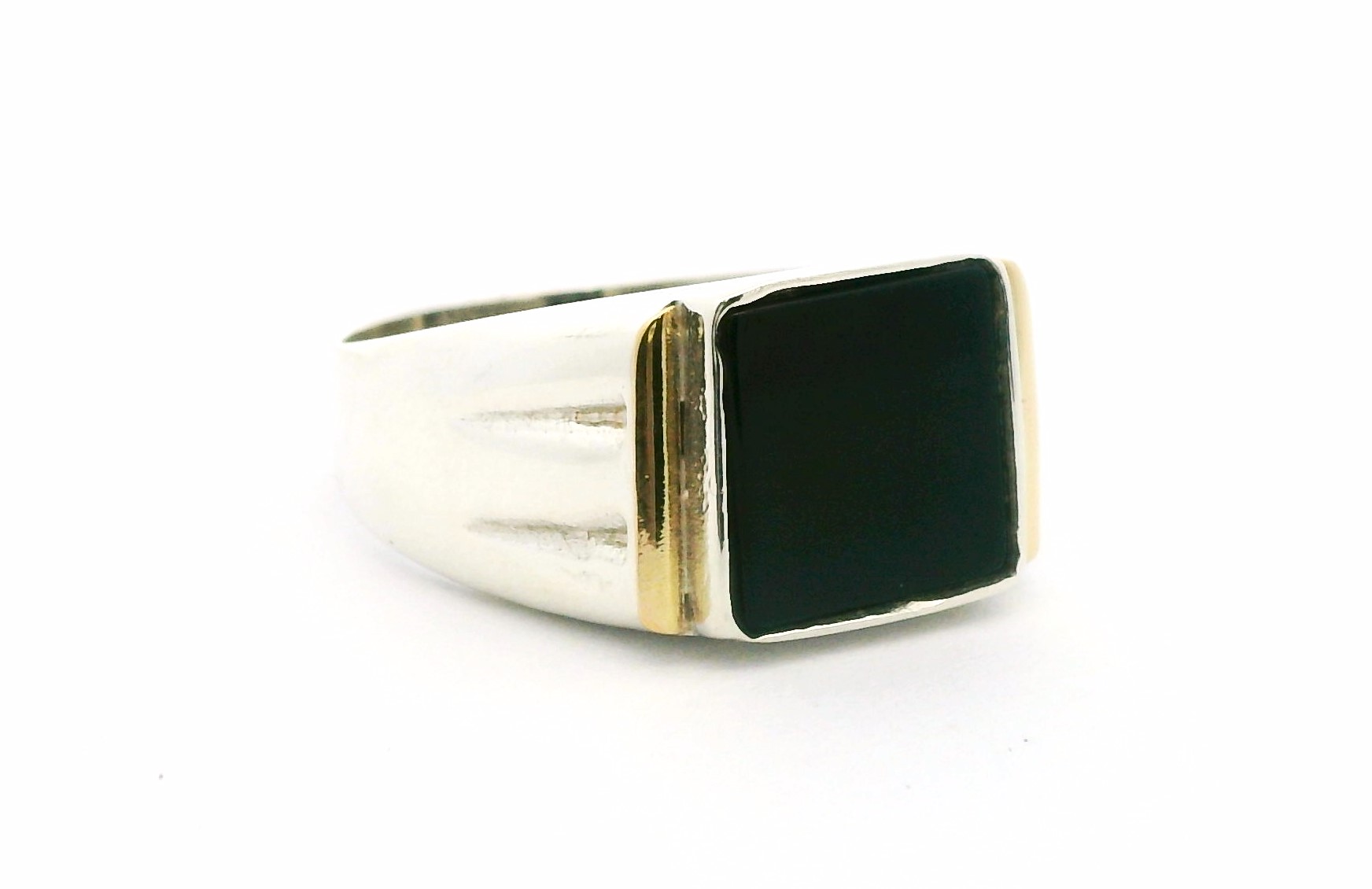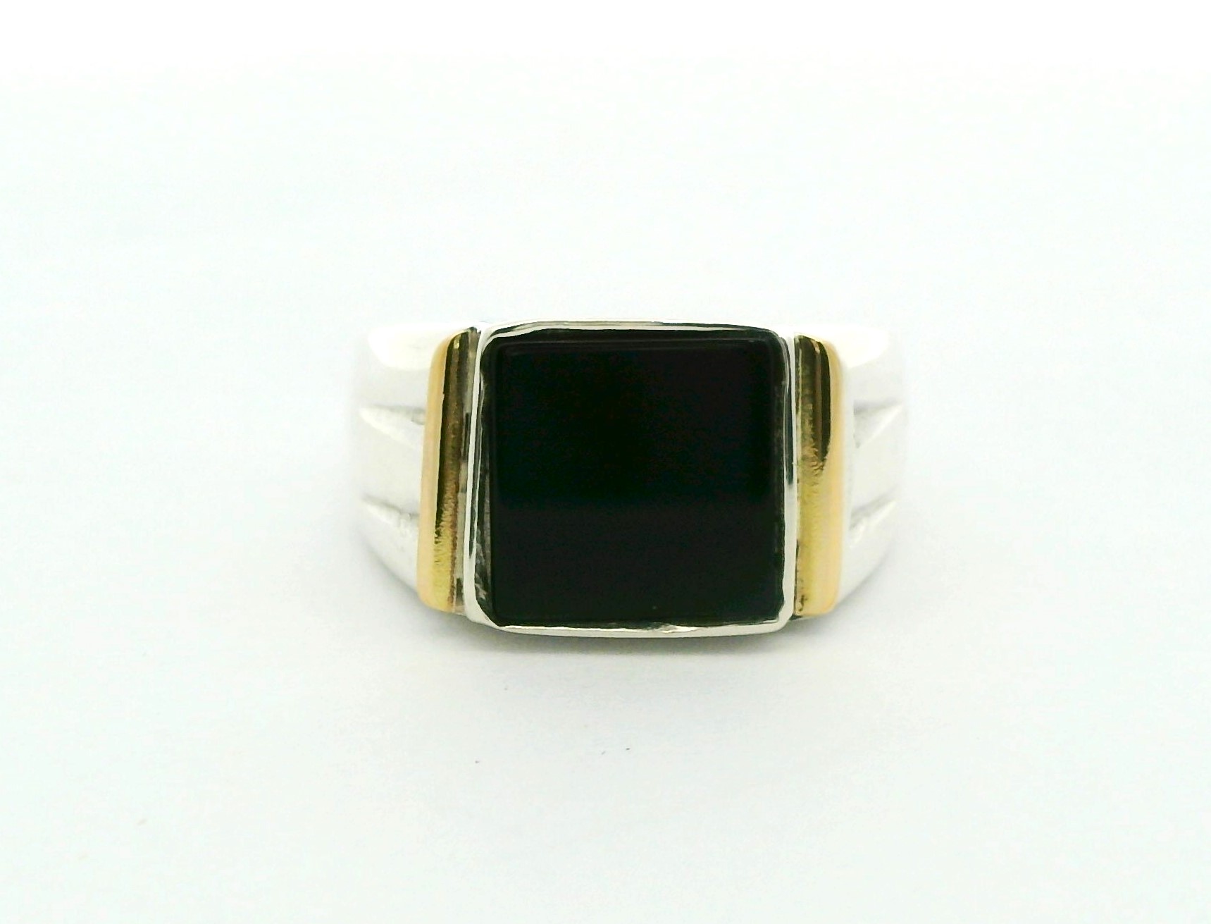 Anillo Plata 925 Maciza Y Oro 18k Onix Cuadrado Sello