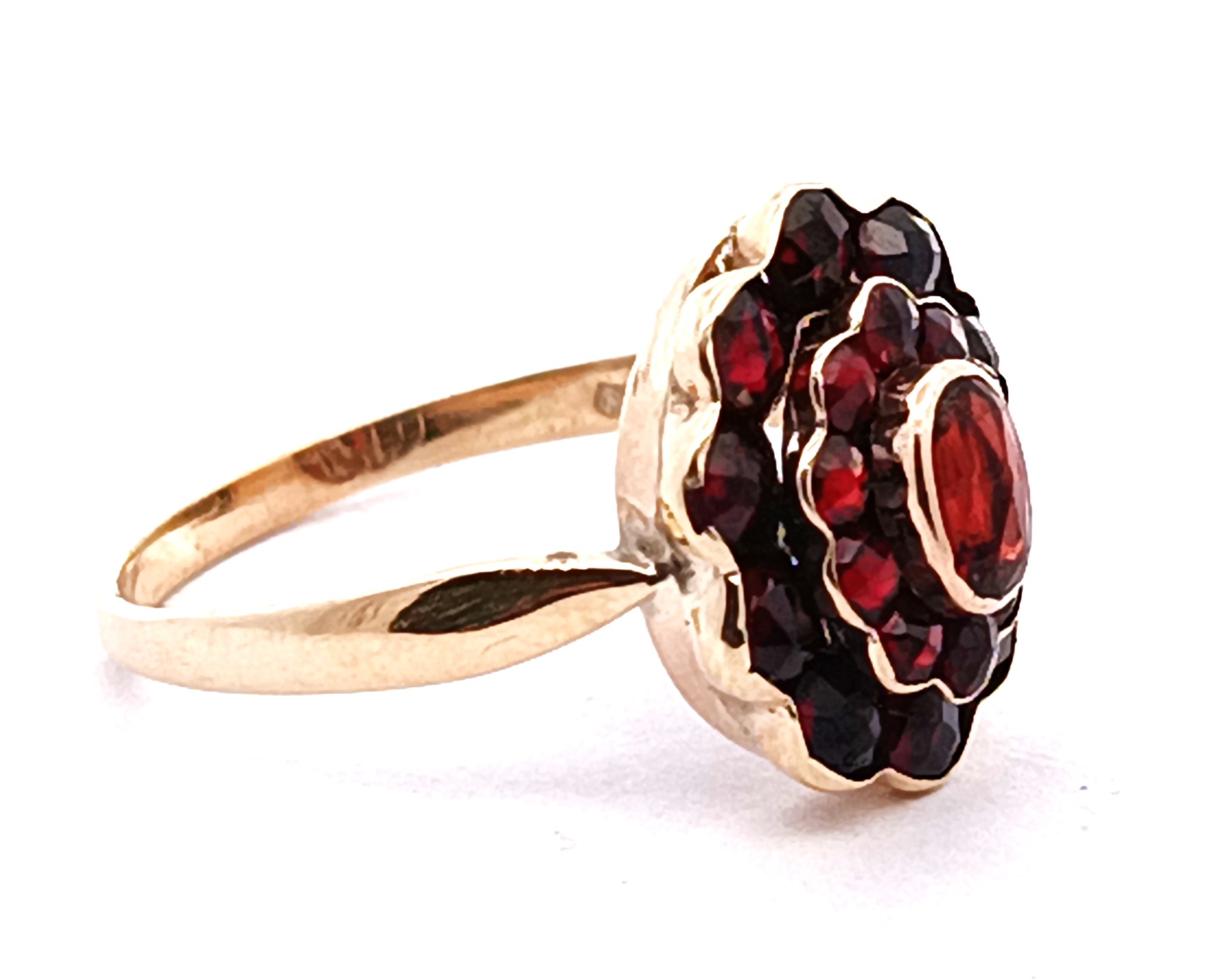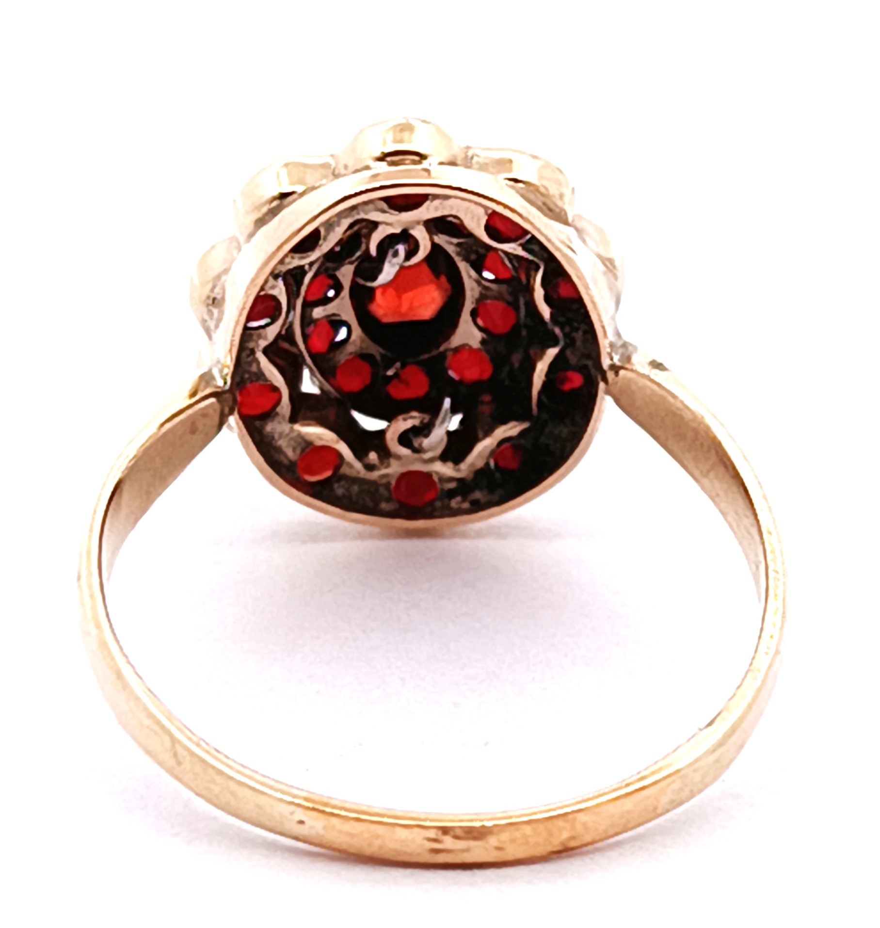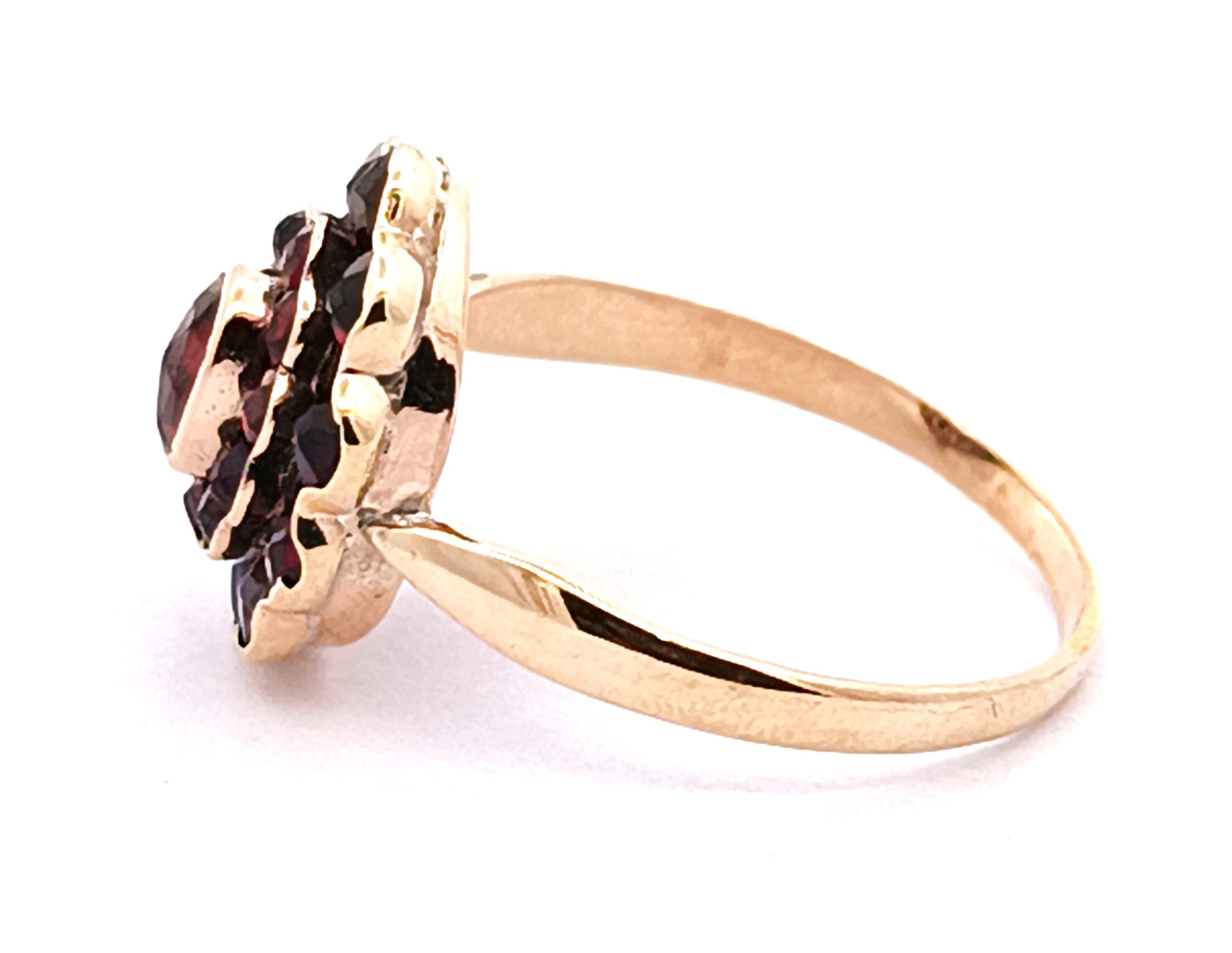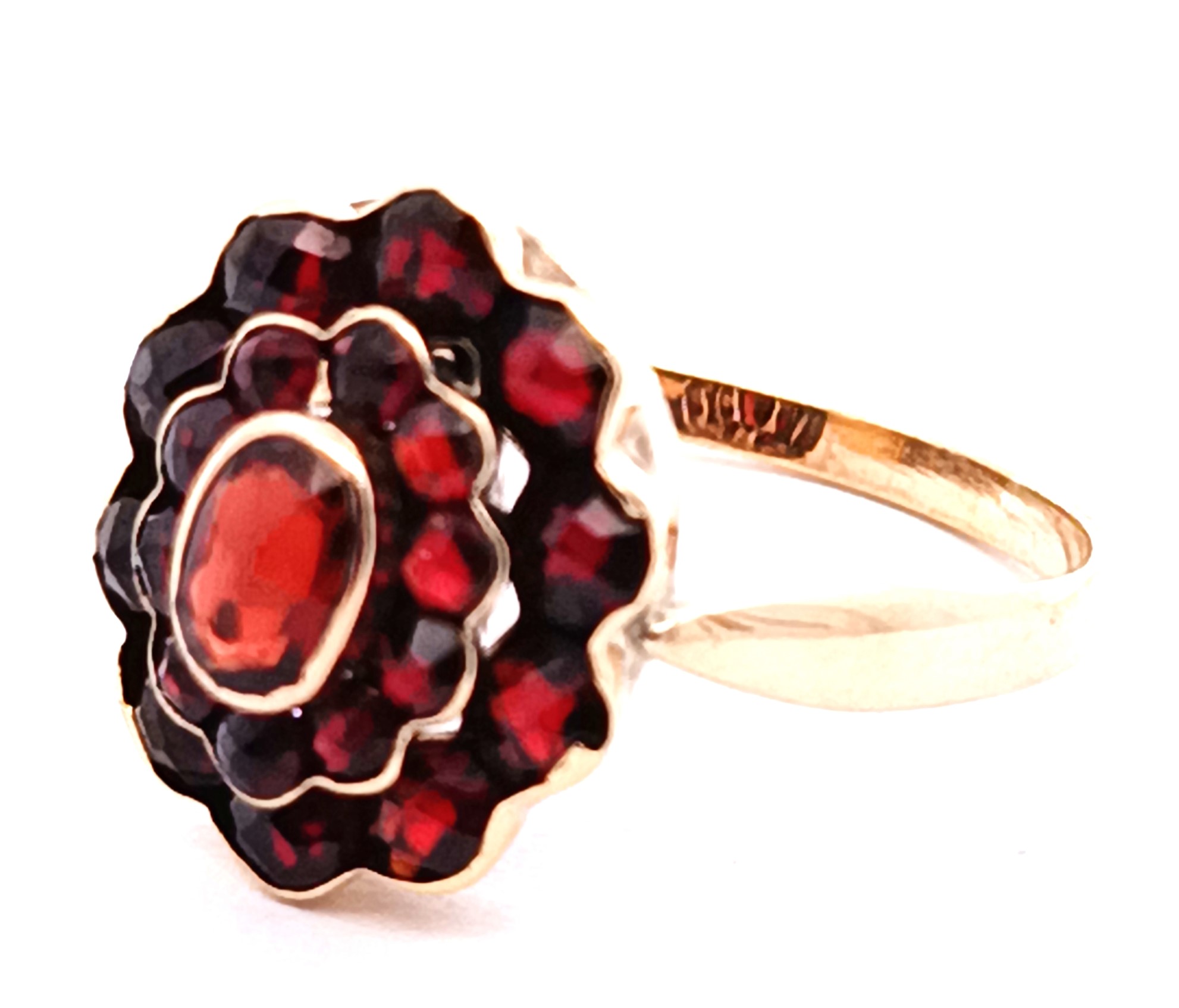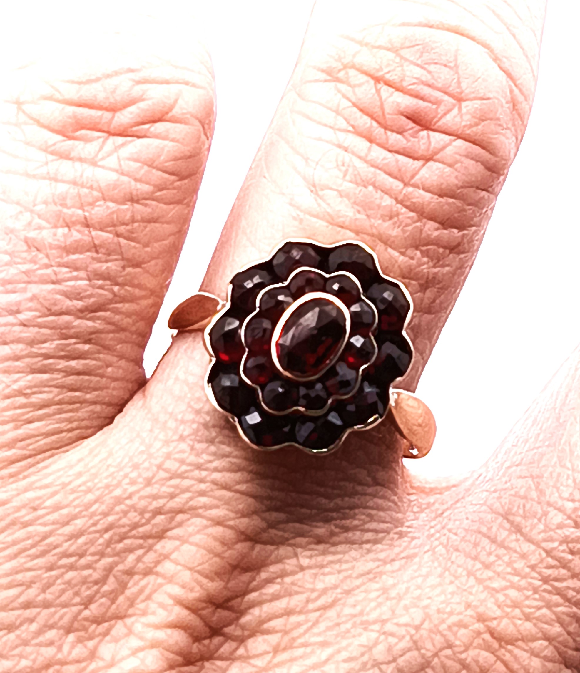 Anillo Roseta Antigua Oro 14k Granates Naturales