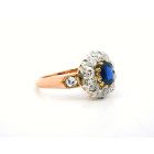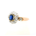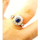 Anillo Roseta Antigua Oro 18k Brillantes Zafiro