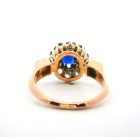 Anillo antiguo roseta europea realizada en oro 18k color rosado , brillantes y zafiro central.