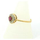 Anillo Roseta Antigua Oro 18k Rubie Natural Brillantes