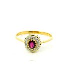 Roseta antigua realizada en oro 750 sellado . Rubie central oval y brillantes autenticos.