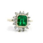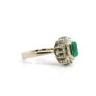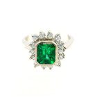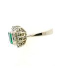 Anillo Roseta Antigua Oro Blanco 18k Brillantes-esmeralda