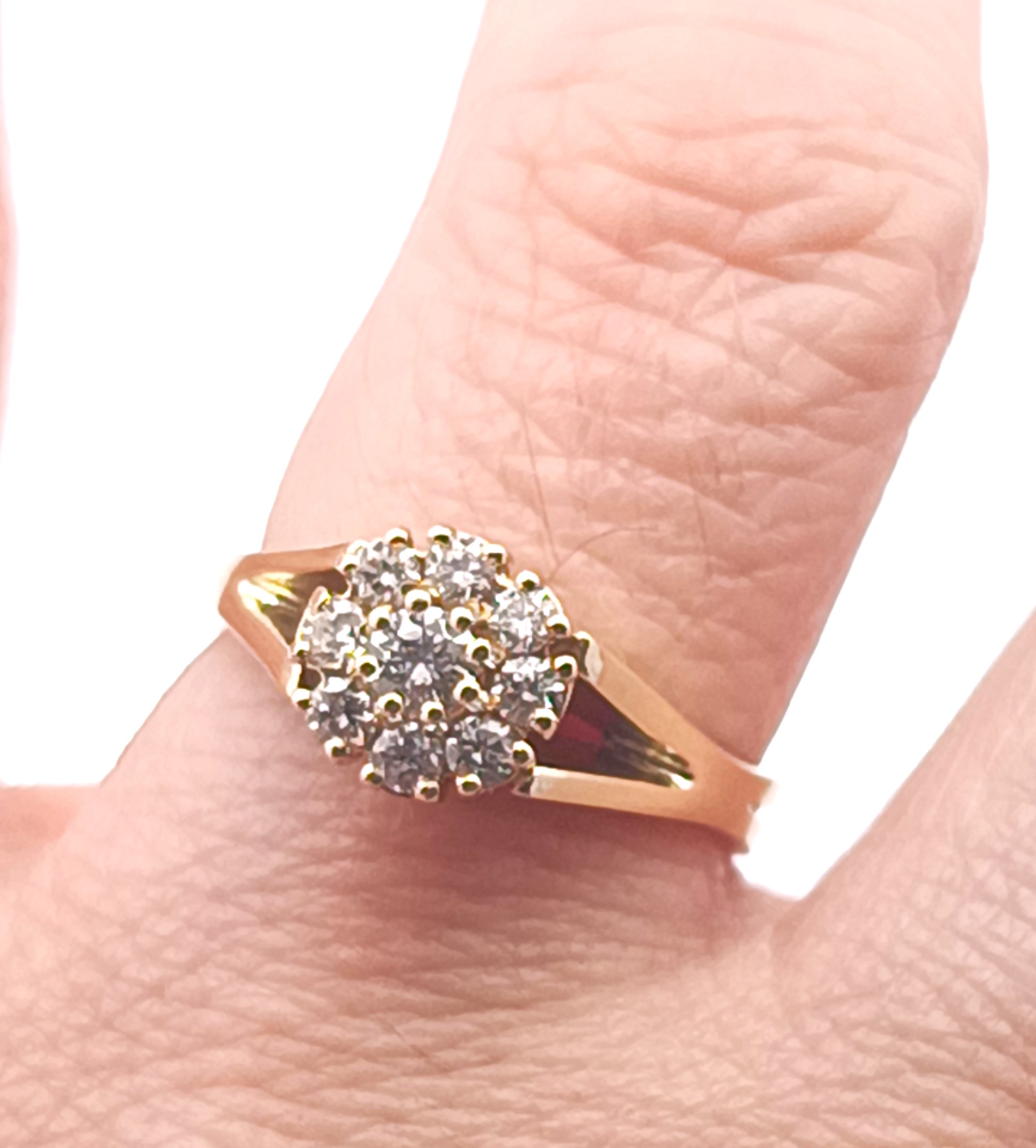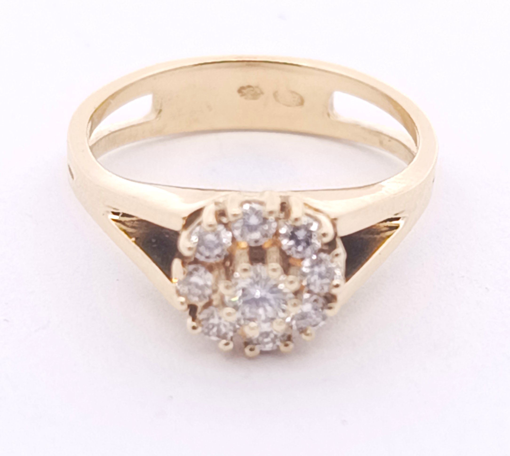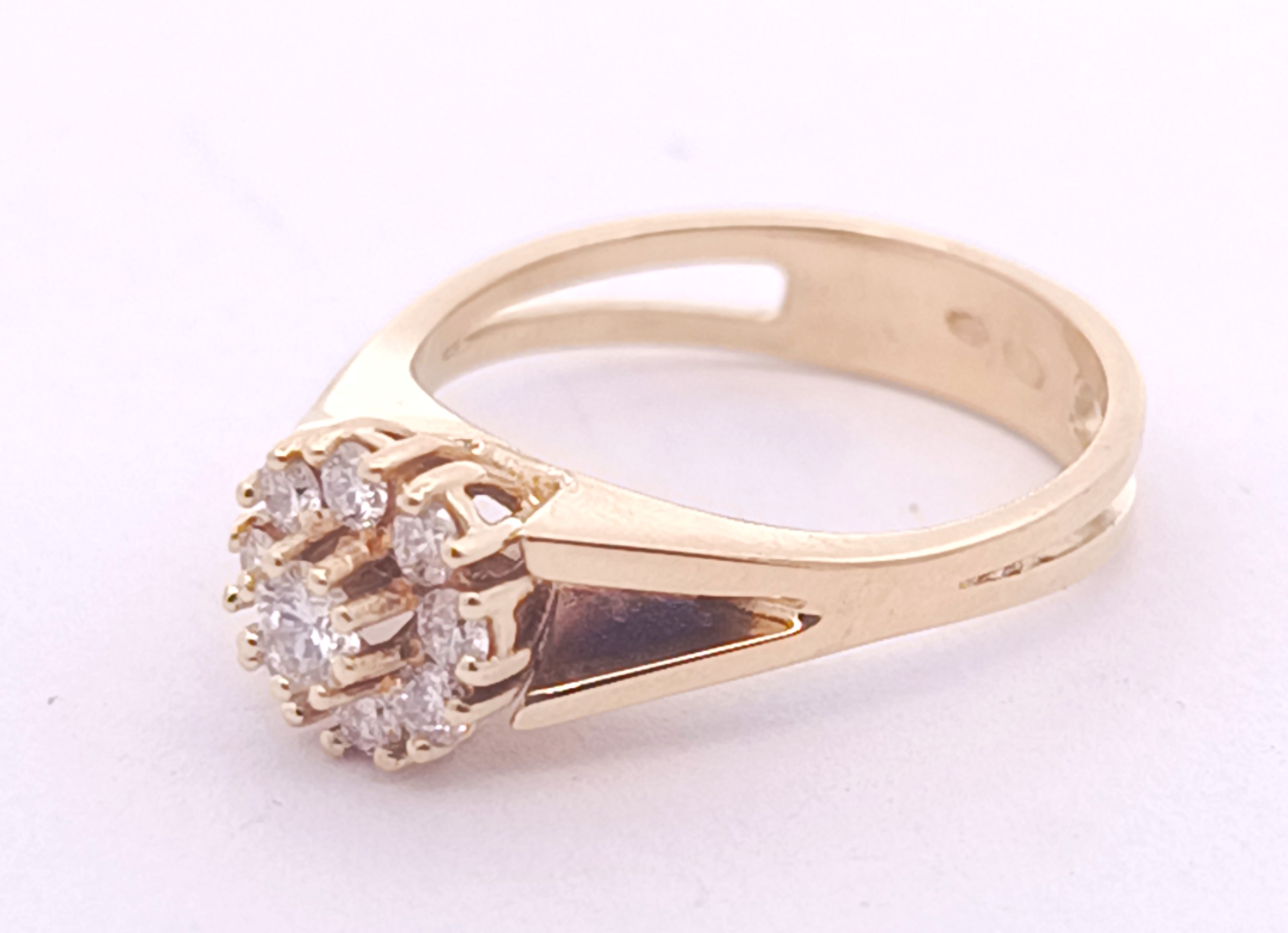 Anillo roseta moderna realizada en oro 18k con brillantes autenticos. Peso en kilates: 0,60 ct aprox