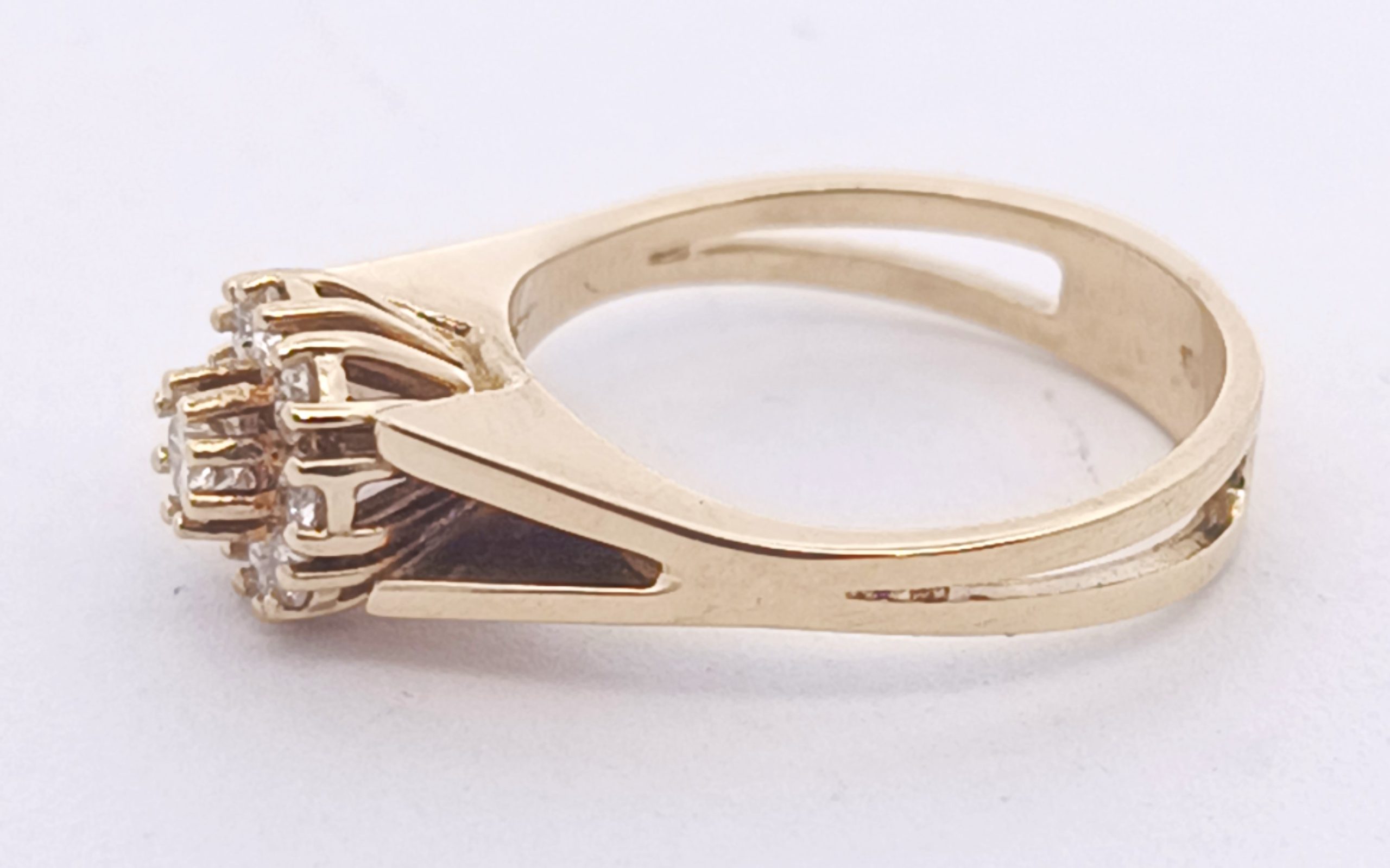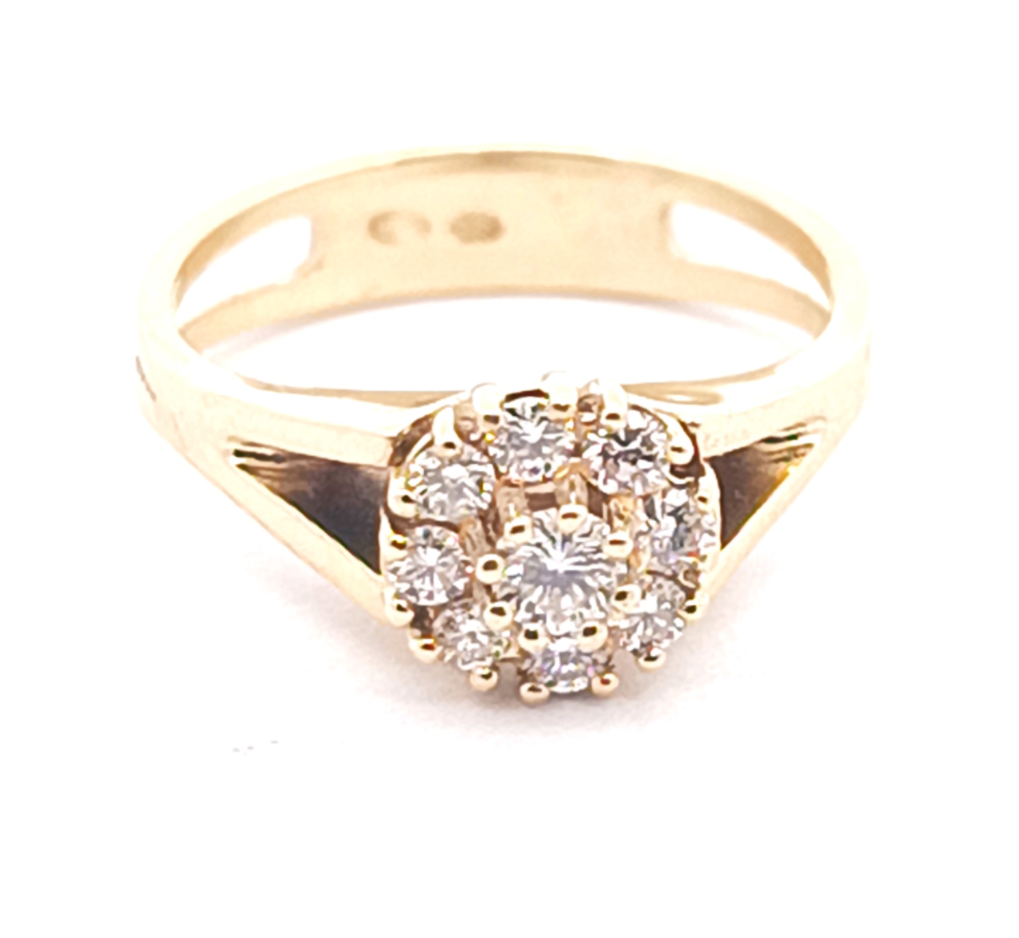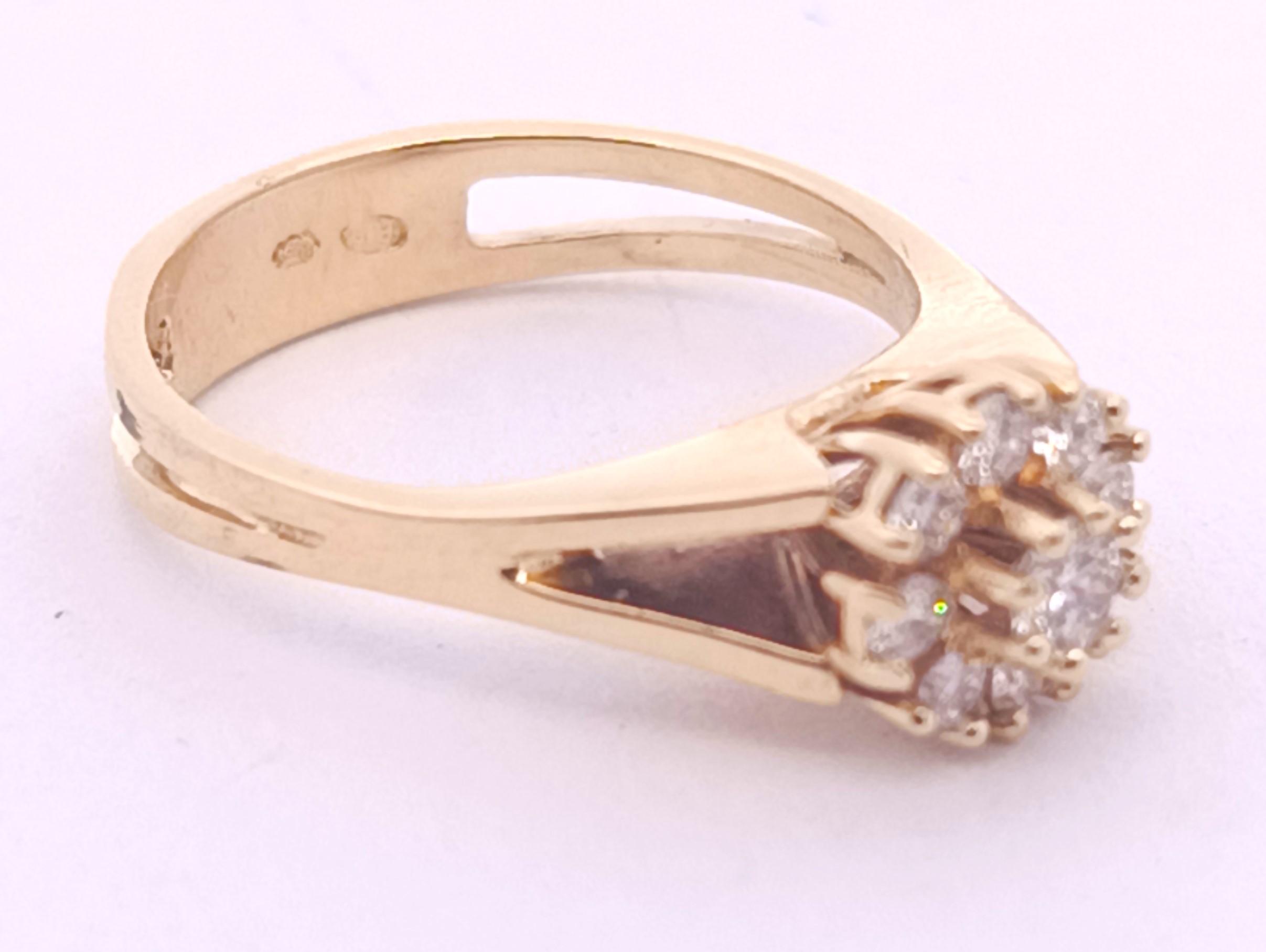 Anillo roseta moderna realizada en oro 18k con brillantes autenticos. Peso en kilates: 0,60 ct aprox
