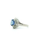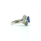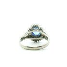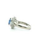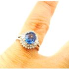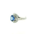 Anillo roseta moderna realizado en platino 900 , zafiro azul oval y brillantes autenticos.