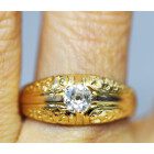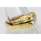 Gran anillo Europeo realizado integramente a mano en oro 18k cincelado a mano , gran trabajo de orfebreria . Posee brillante autentico de gran tamaño 0,60 ct , excelente calidad y color.