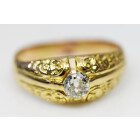 Anillo Solitario Art Noveau Oro 18k Cincelado Gran Brillante