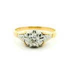 Anillo solitario de compromiso realizado en oro 18k y engarces y decoraciones en platino 950. Posee brillante central talla antigua de casi medio kilate.