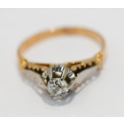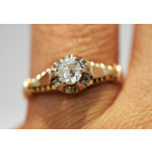 Anillo solitario antiguo , realizado a mano , oro 18 k y engarces sobre platino 950 , brillante autentico talla antigua europea , maxima calidad y pureza , peso en kilates : 0,40 ct , peso en gramos de la alhaja: 3 gr