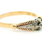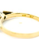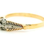 Anillo solitario de compromiso realizado en oro 18k con decoraciones en platino 950. Posee zafiro blanco central talla brillante antiguo.