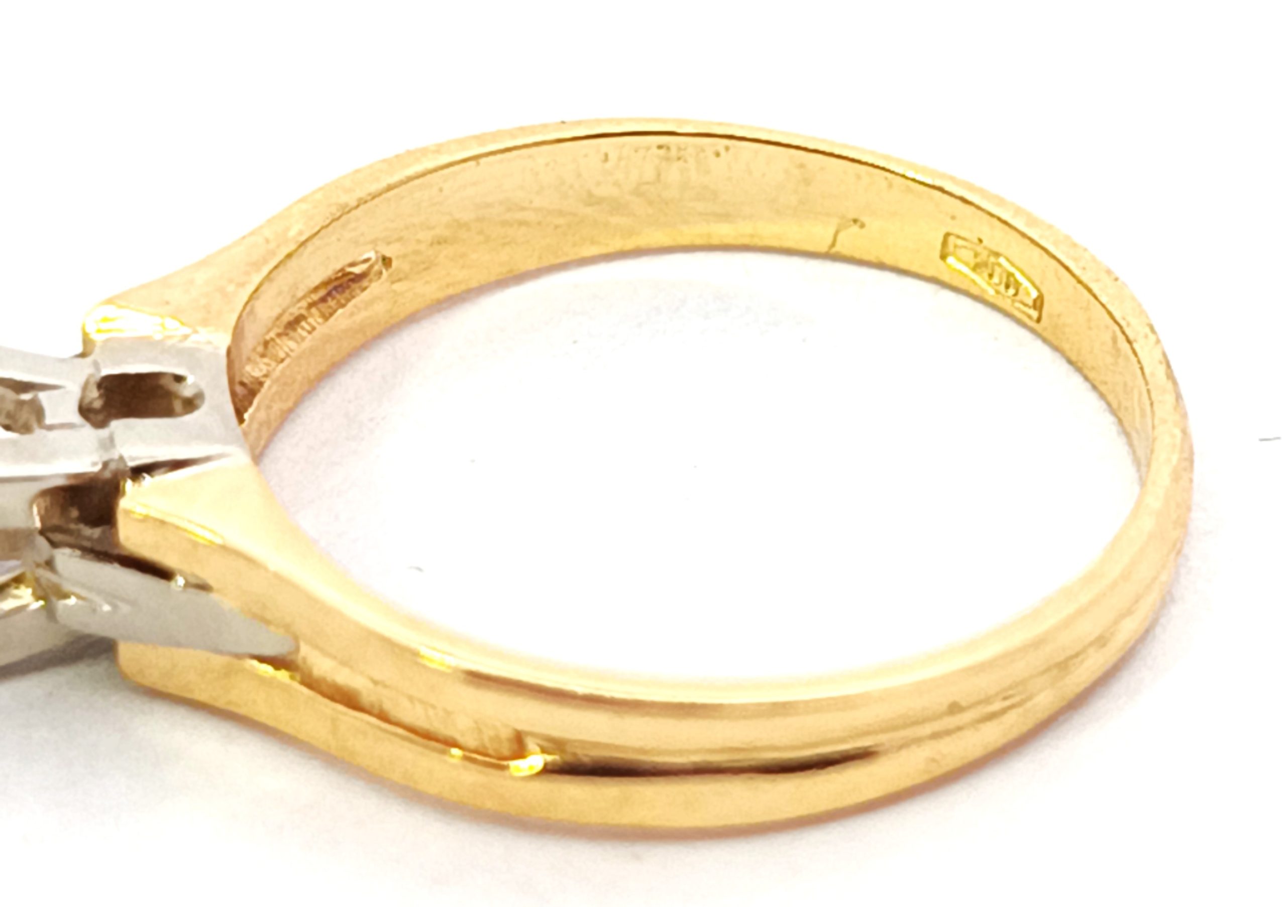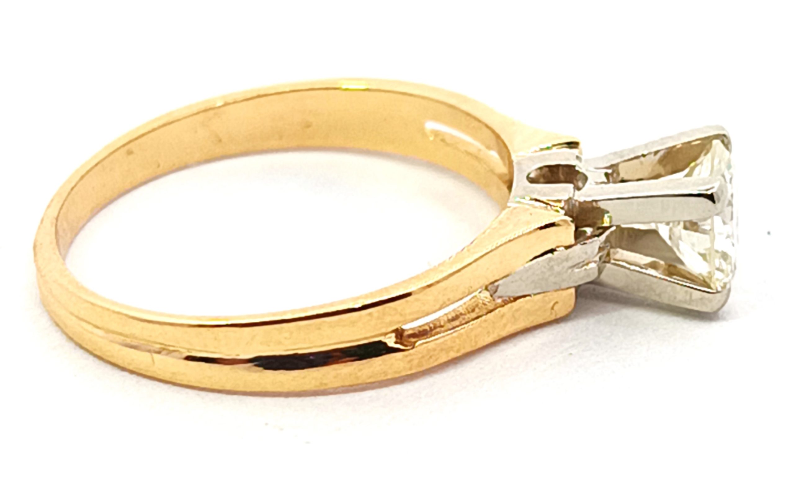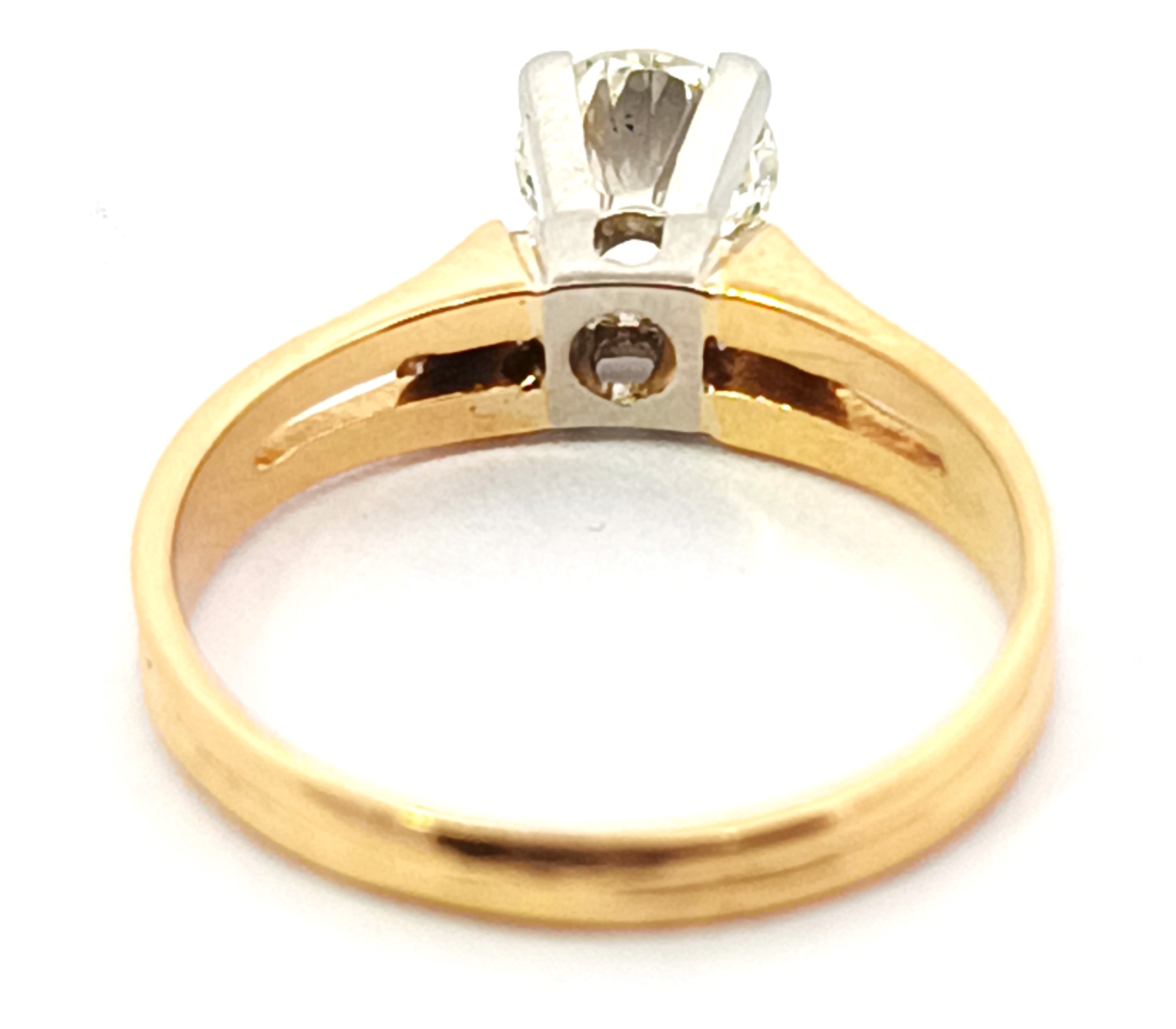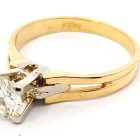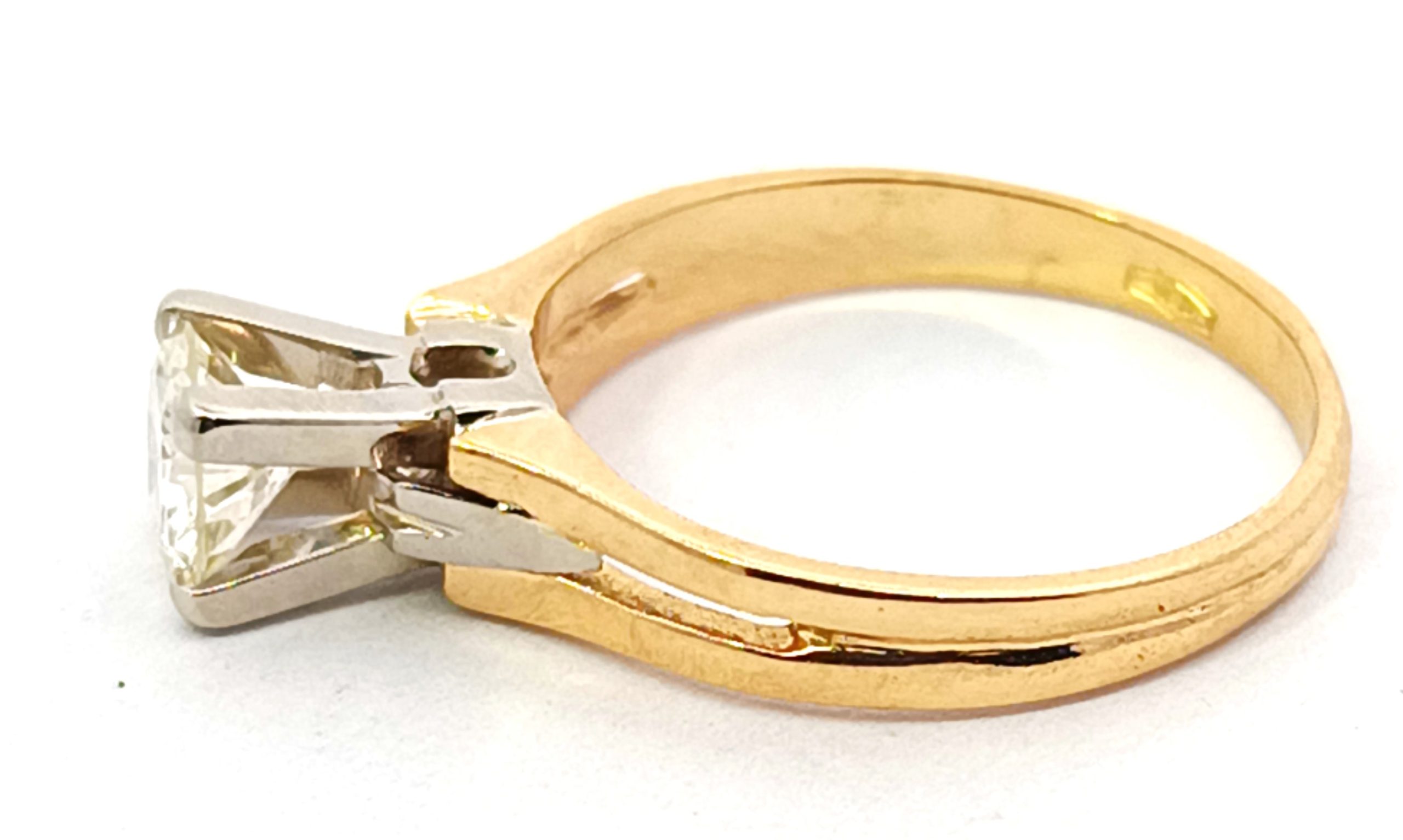Anillo solitario de compromiso de diseño moderno , realizado en oro 18k amarillo y blanco. Brillantes de 0,60 ct ( mas de medio kilate ).