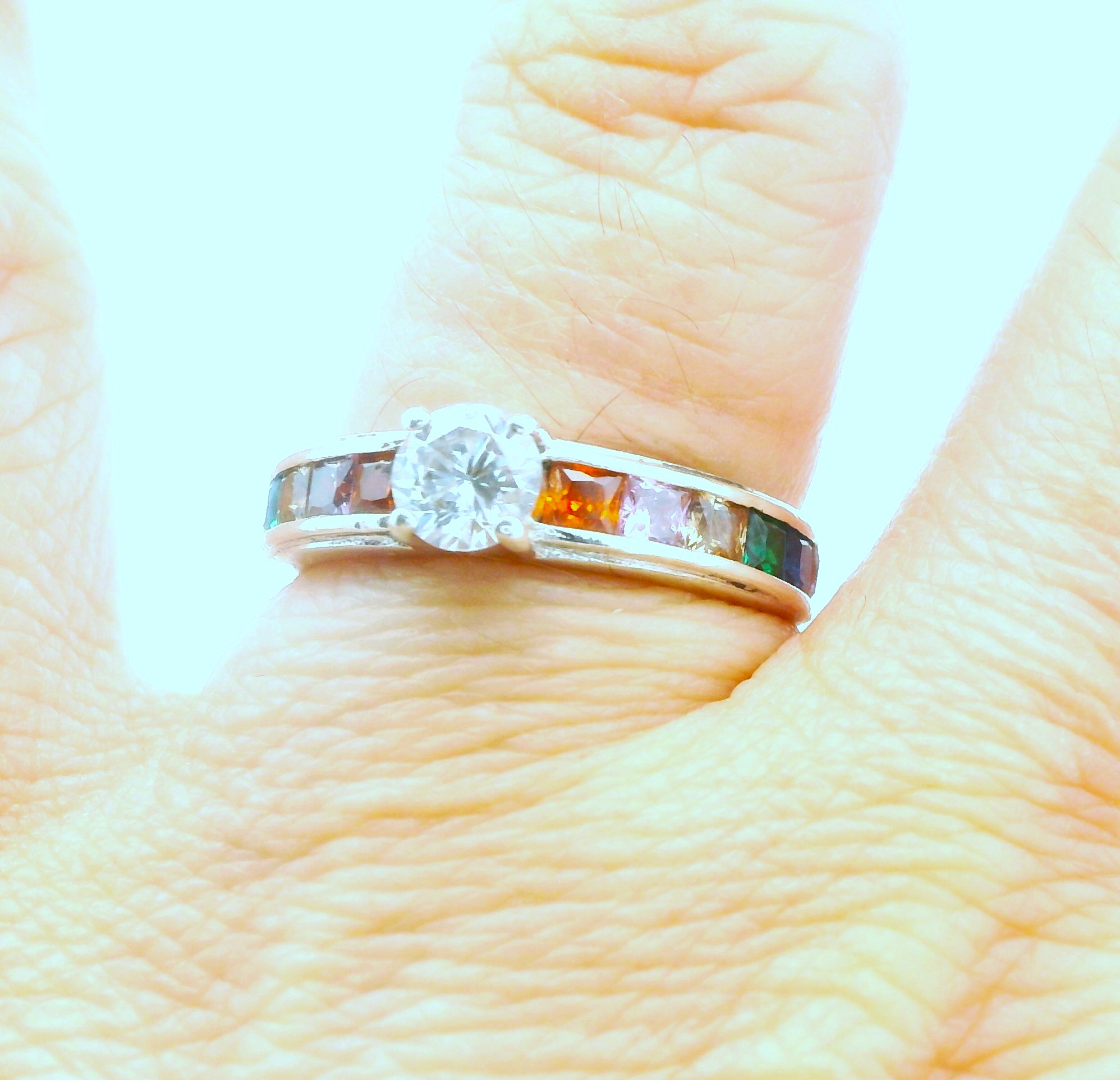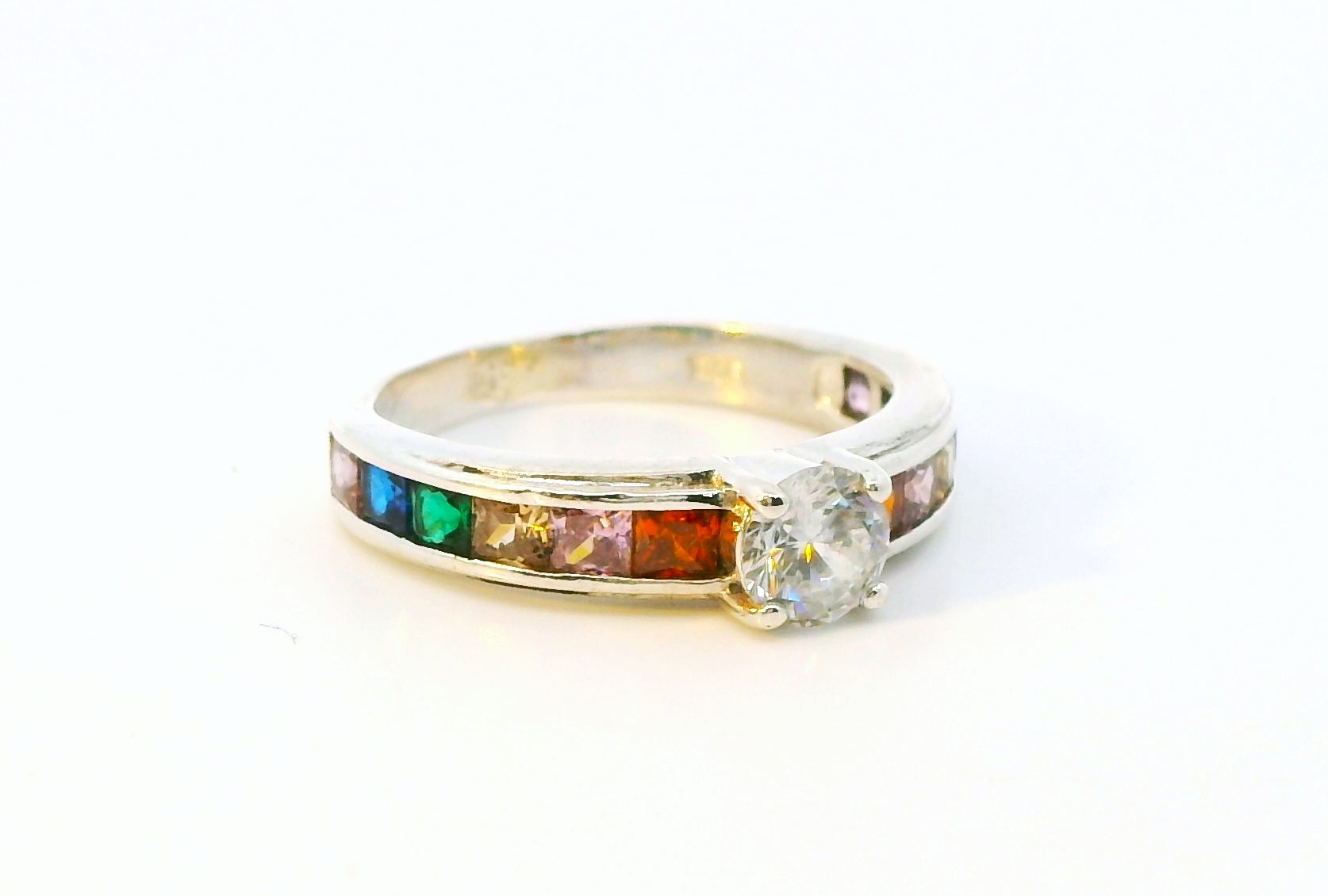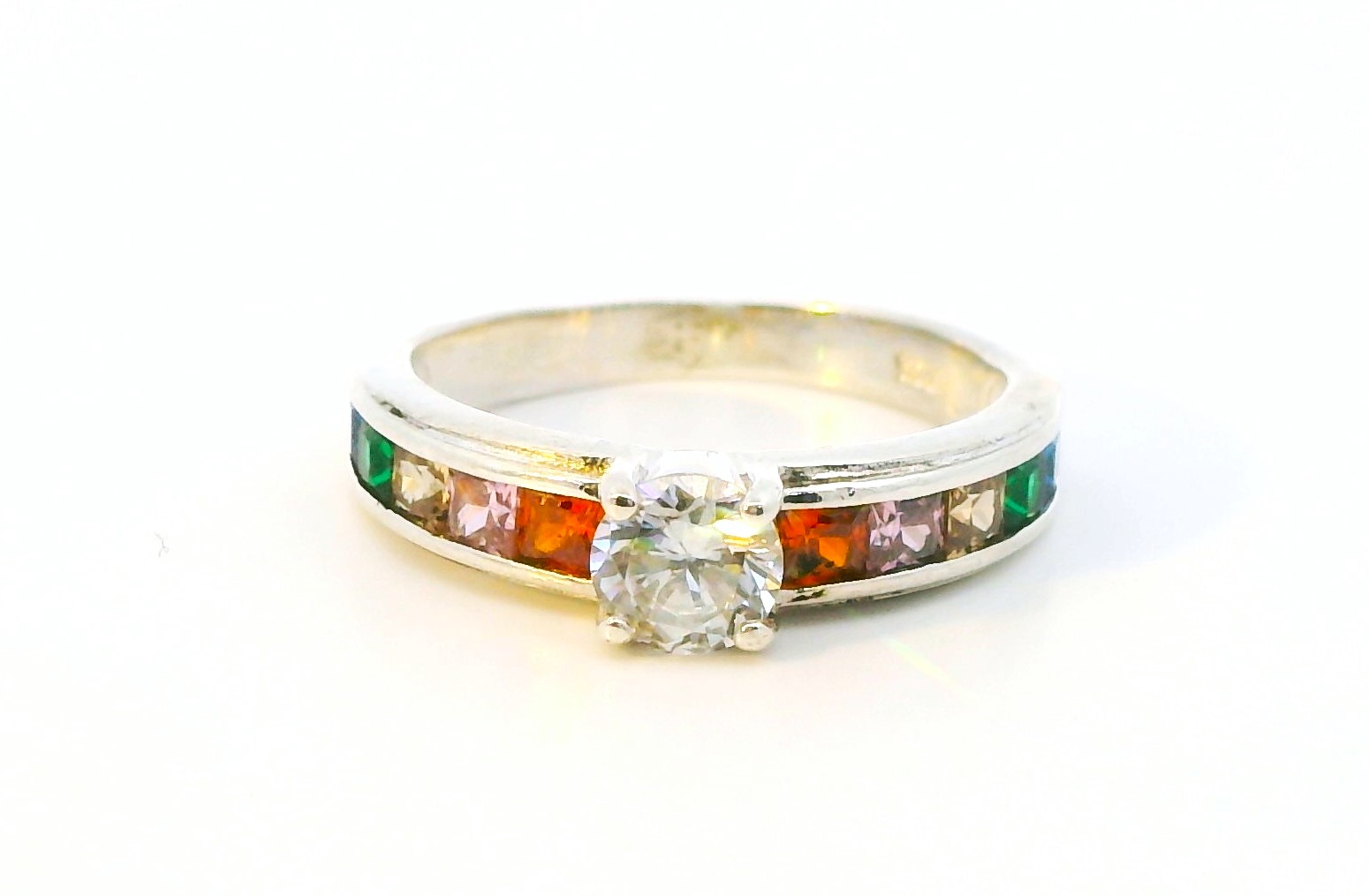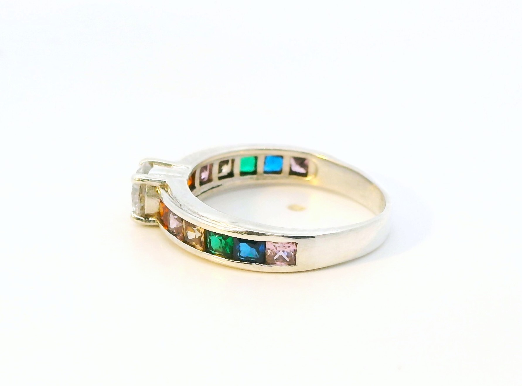 Anillo Solitario Moderno Plata 925 Arcoiris Cubic 0,60 Ct