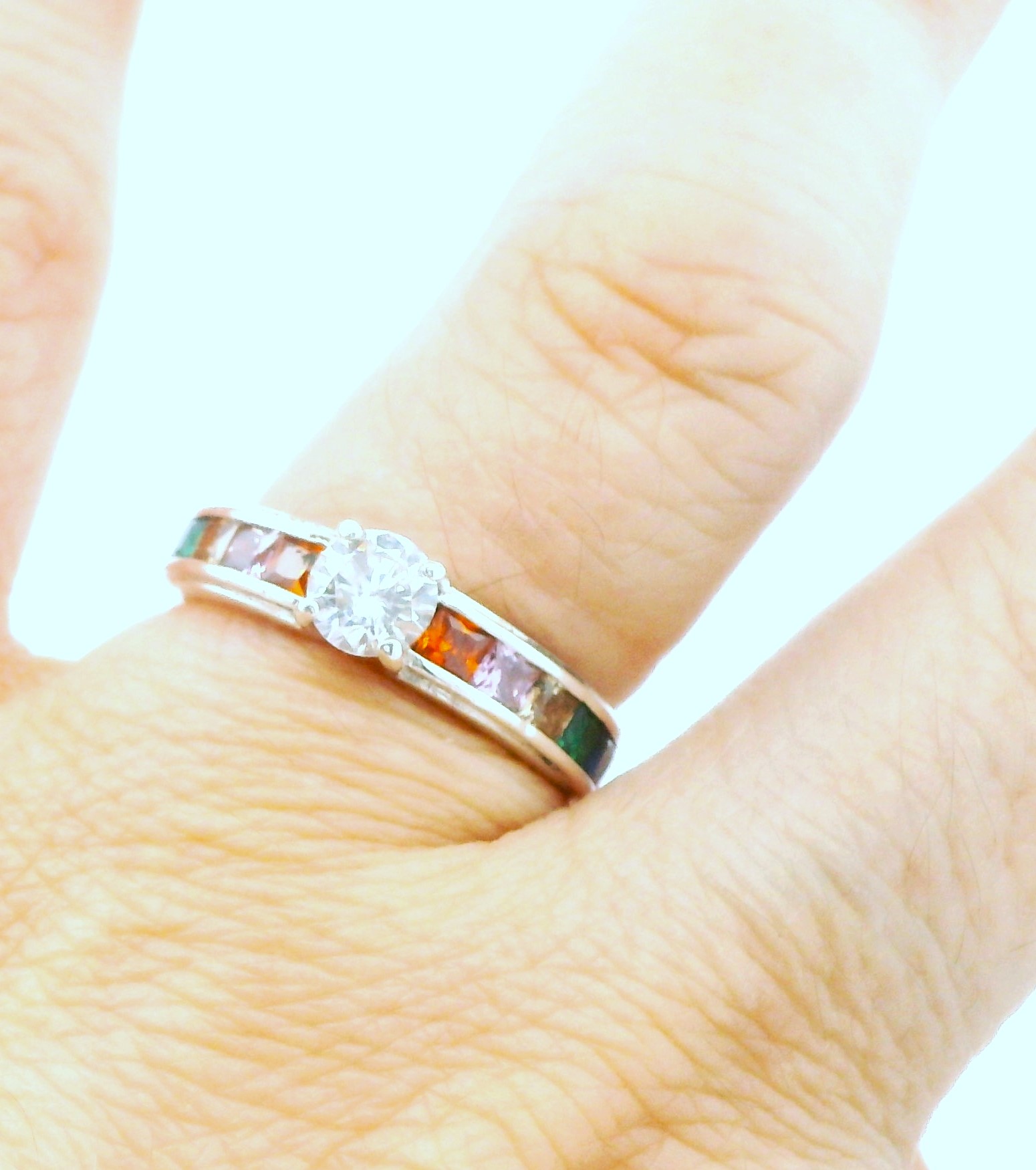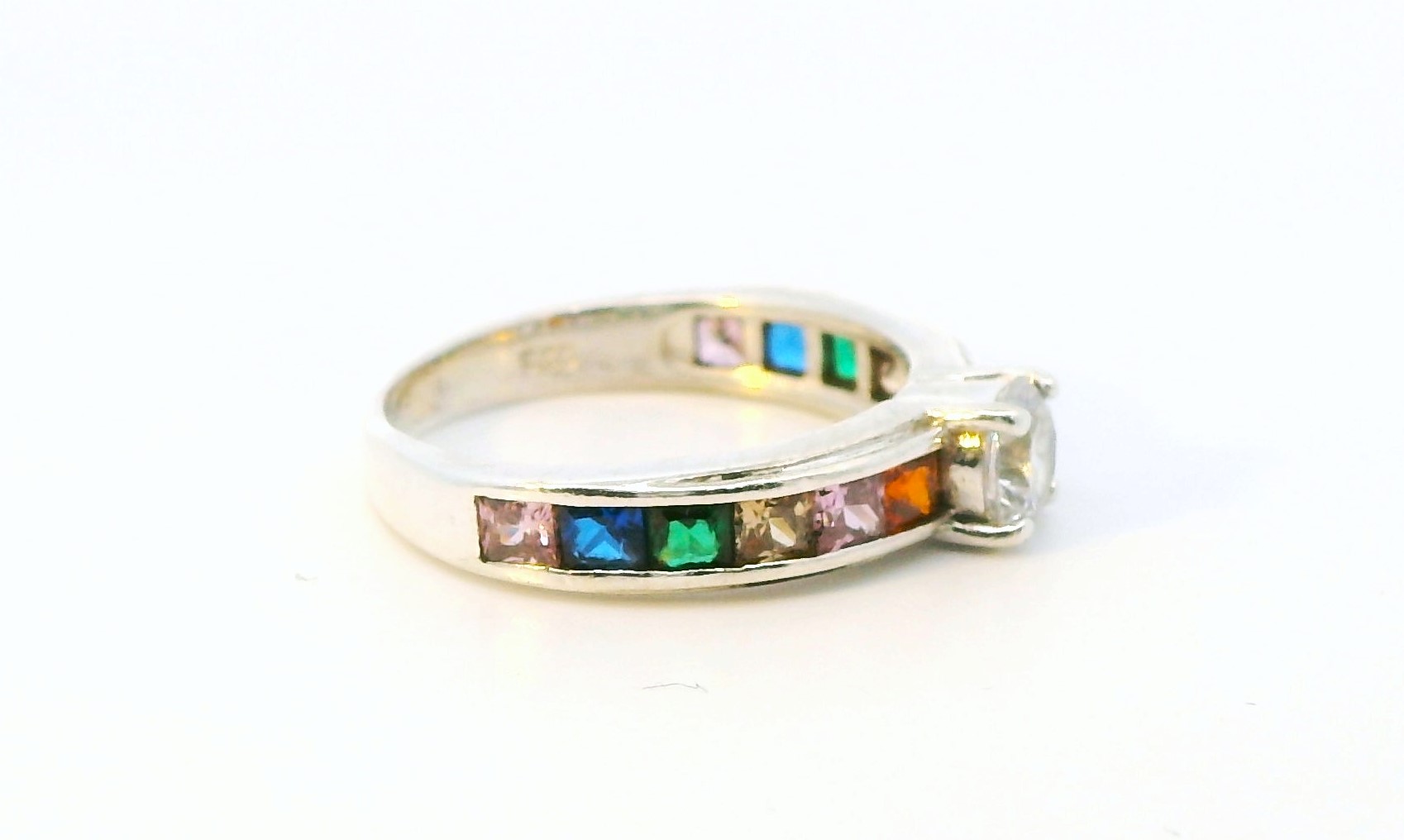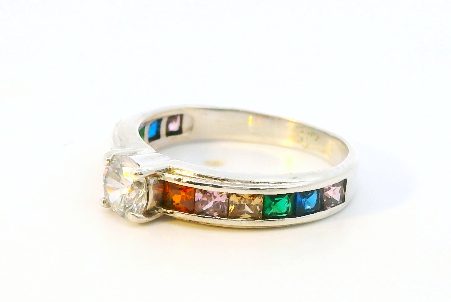 Anillo solitario de compromiso realizado en plata 925 . Modelo: arco iris, con cubic central de 0,60 cts.