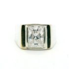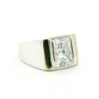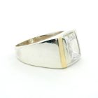 Anillo de compromiso moderno realizado en plata 925 con detalles en oro 18k. Posee cubic central talla esmeralda.