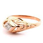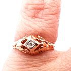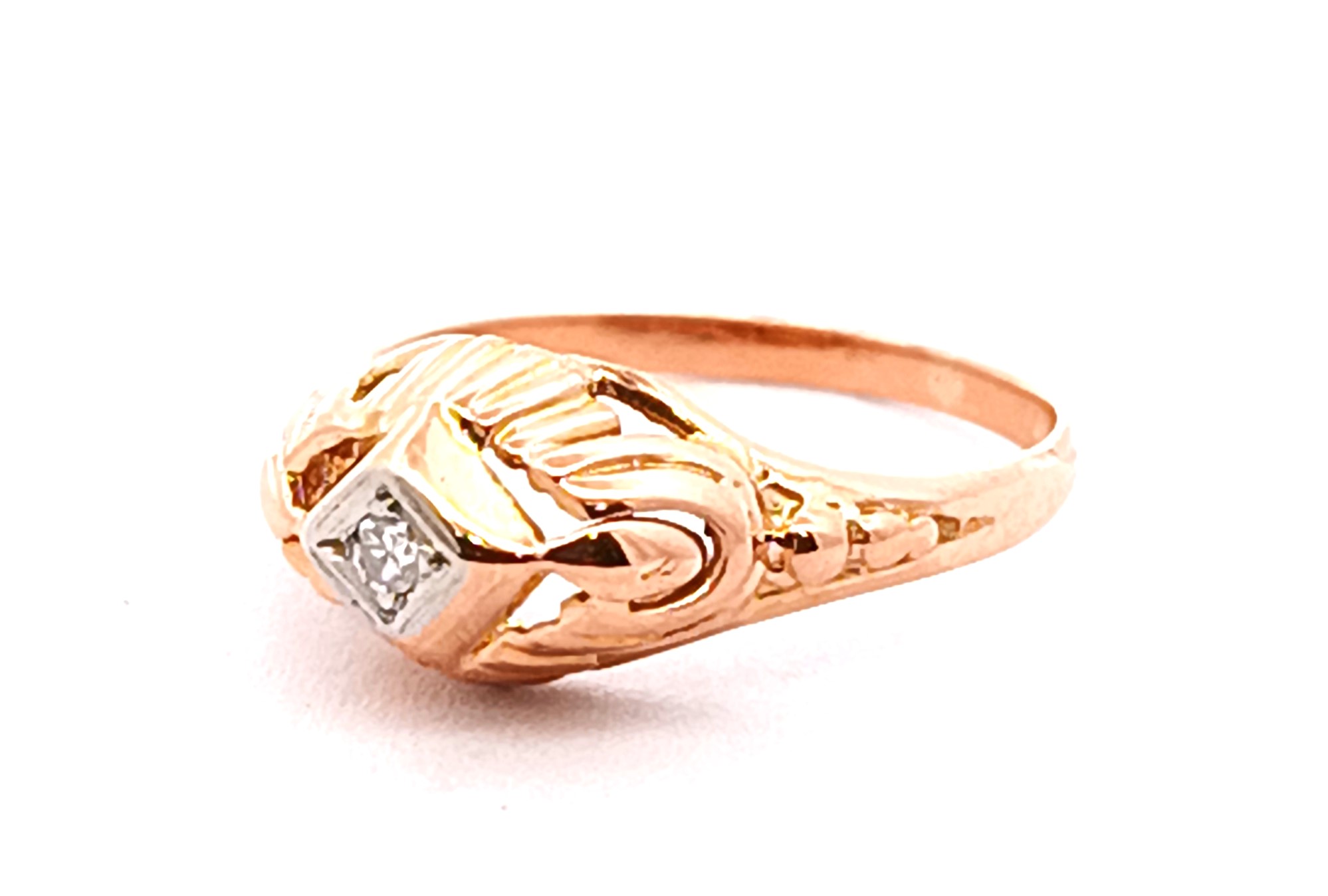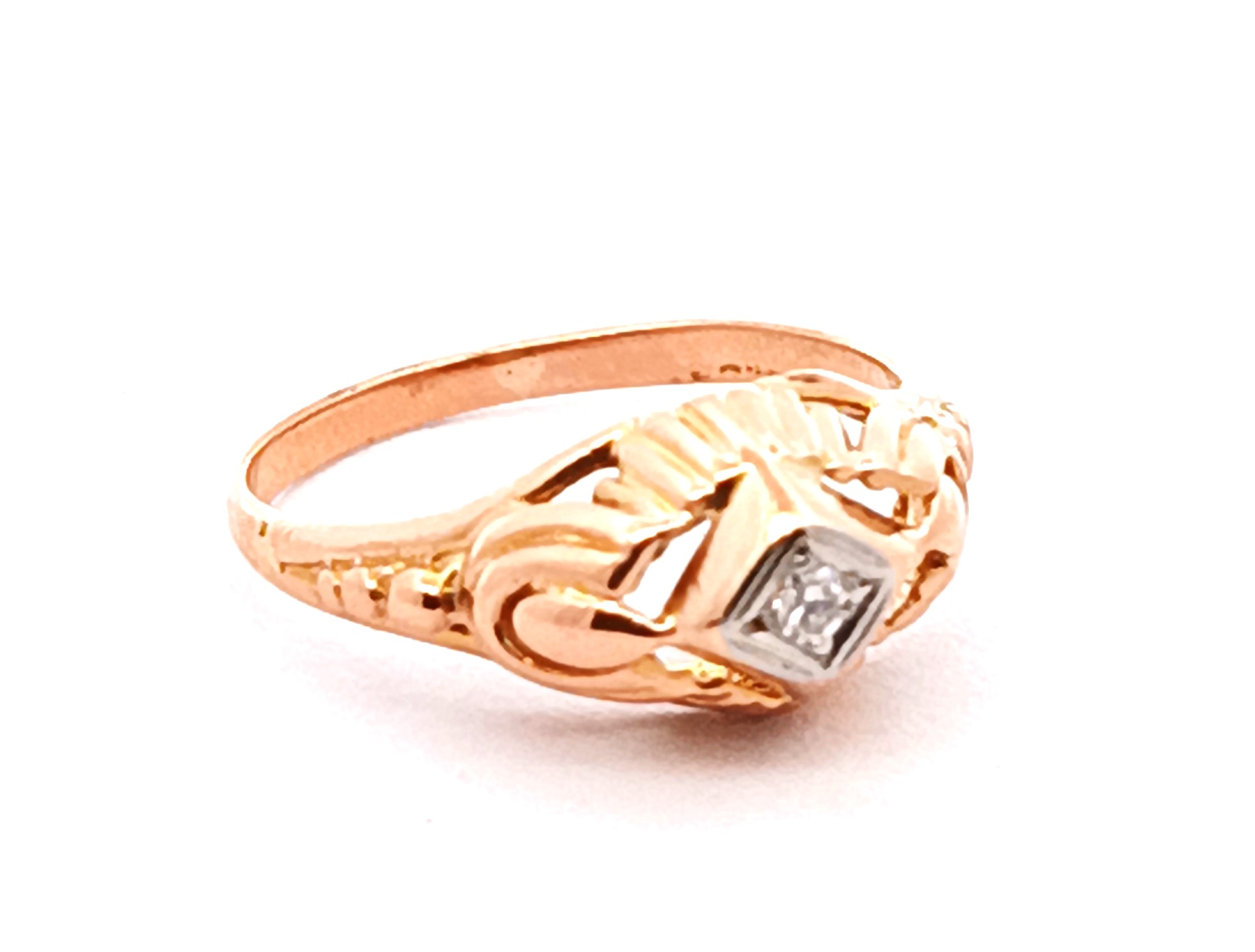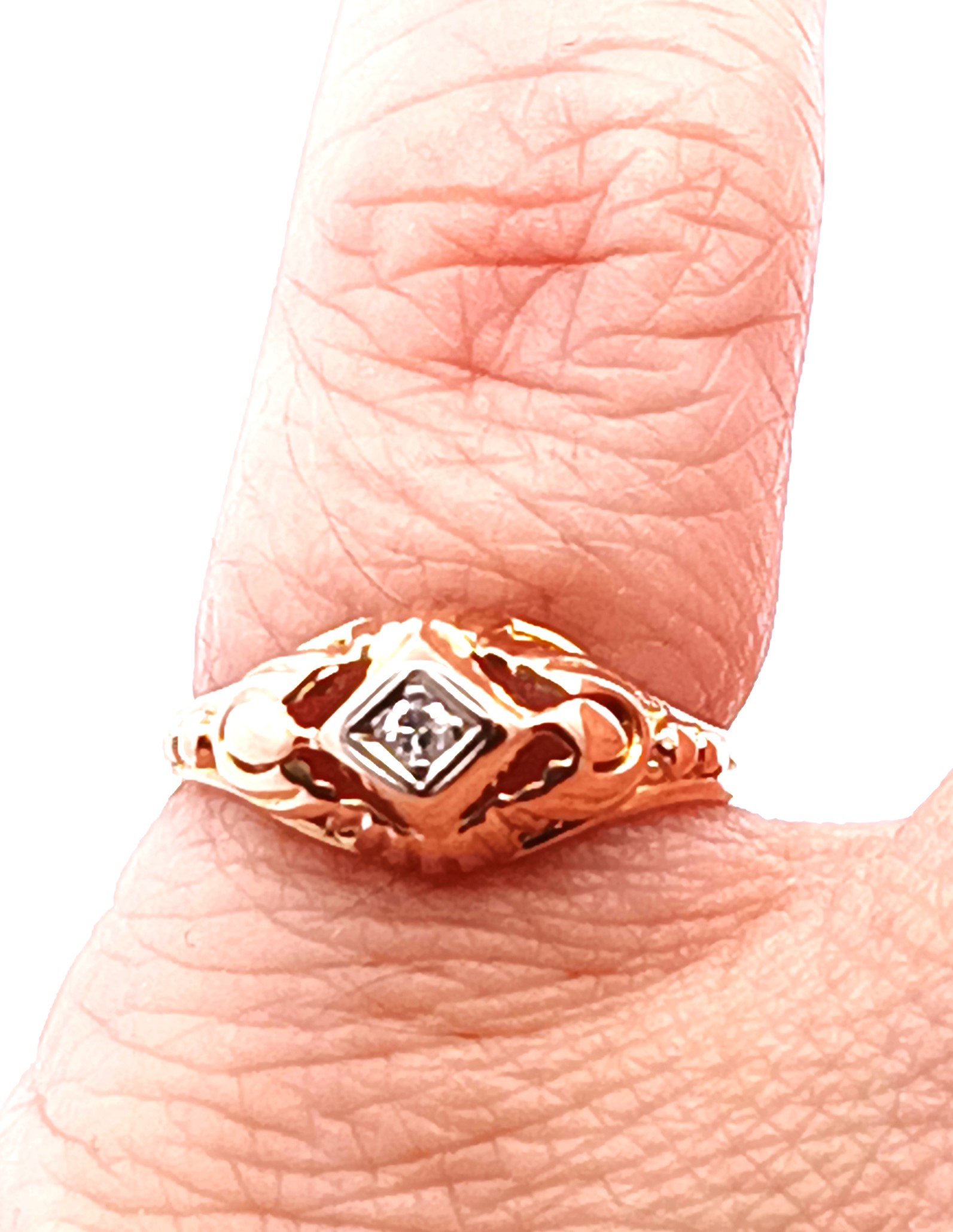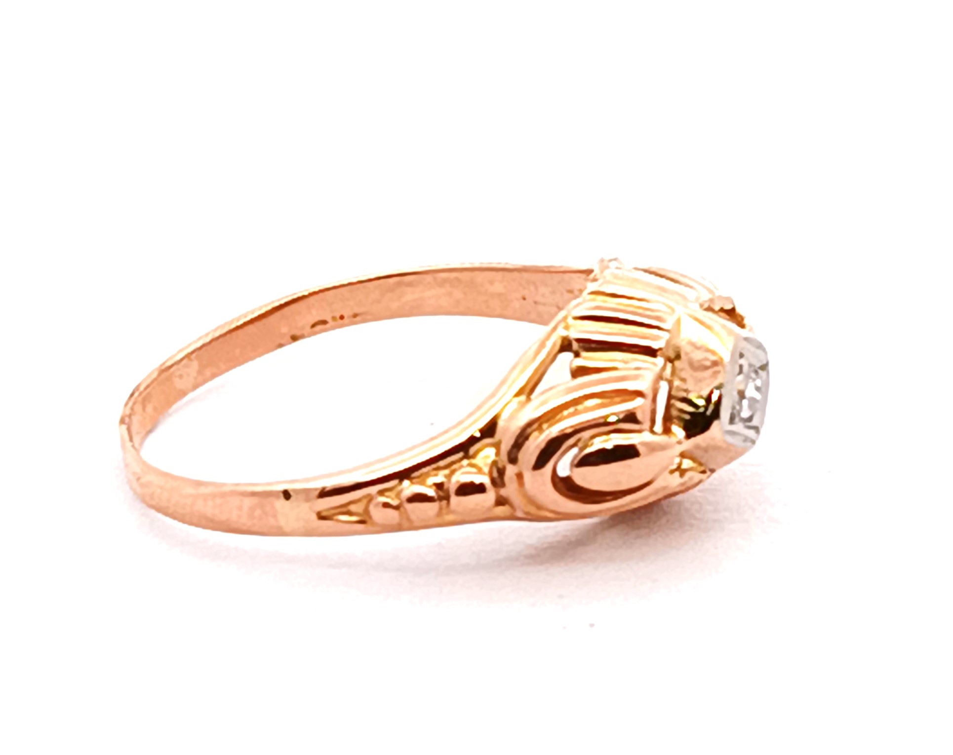 Anillo solitario antiguo realizado en oro 18k con detalle de engarce sobre platino 950 , con brillante central.