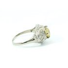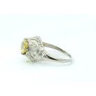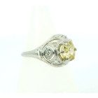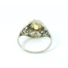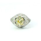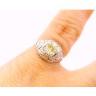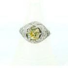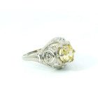 Anillo solitario antiguo de compromiso realizado en platino 950 . Brillante central talla antigua europea color fancy yellow.