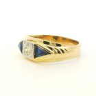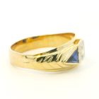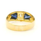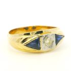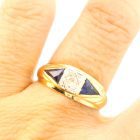 Anillo Art deco , realizado en oro 18k con engarce sobre platino 950. Posee brillante central y zafiros triangulos.