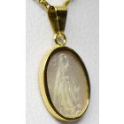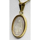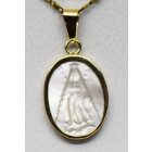 Delicado dije antiguo , realozado en oro 18k y nacar , con imagen tallada a mano de la Virgen Maria.