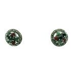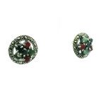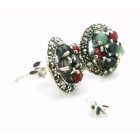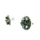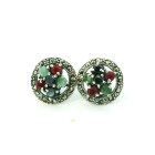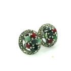 Par de aros realizados en plata 925 con esmeraldas, rubies, zafiros y marquesitas engarzadas. Modelo: roseta. Estilo: antiguo.