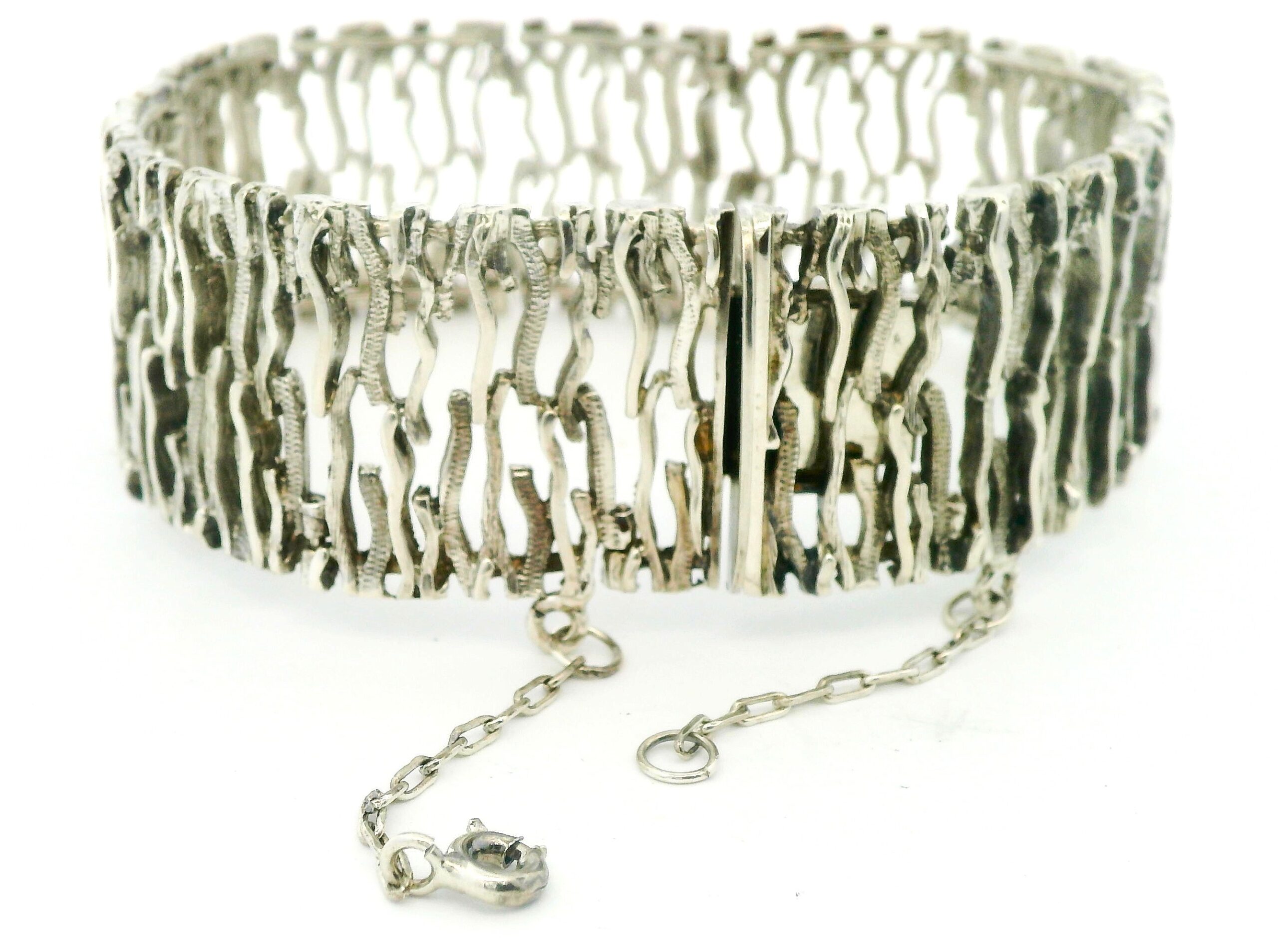 Pulsera brazalete ancha de diseño realizada en plata 900 sellada , maciza.