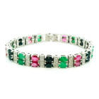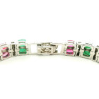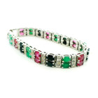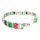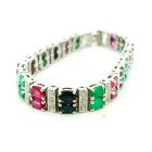 Pulsera moderna de diseño Europeo realizada en plata 925 sellada , con rubies , zafiros y esmeraldas engrazadas. Estilo Bulgari.