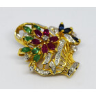 Broche Antiguo Oro 18k Rubies ,esmeraldas,brillantes,zafiro