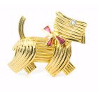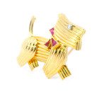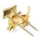 Exquisito broche art deco realizado en oro 18k, modelo: perro. Posee brillante y rubies autenticos.