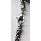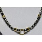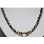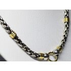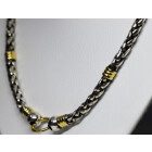 Cadena gargantilla moderna , realizada en plata con detalles de oro , maciza , modelo de eslabon trenza.
