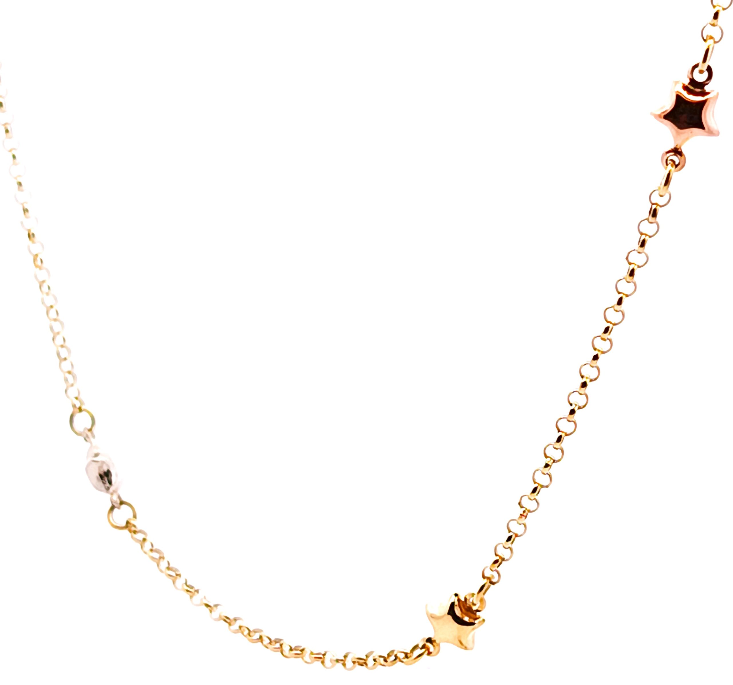 Collar moderno realizado en oro 18k combinando oro de los 3 colores, con estrellas .